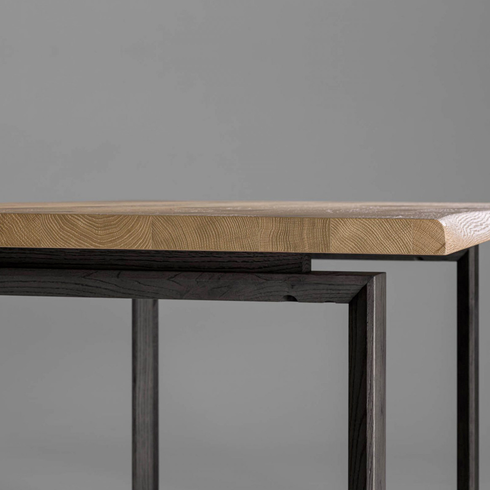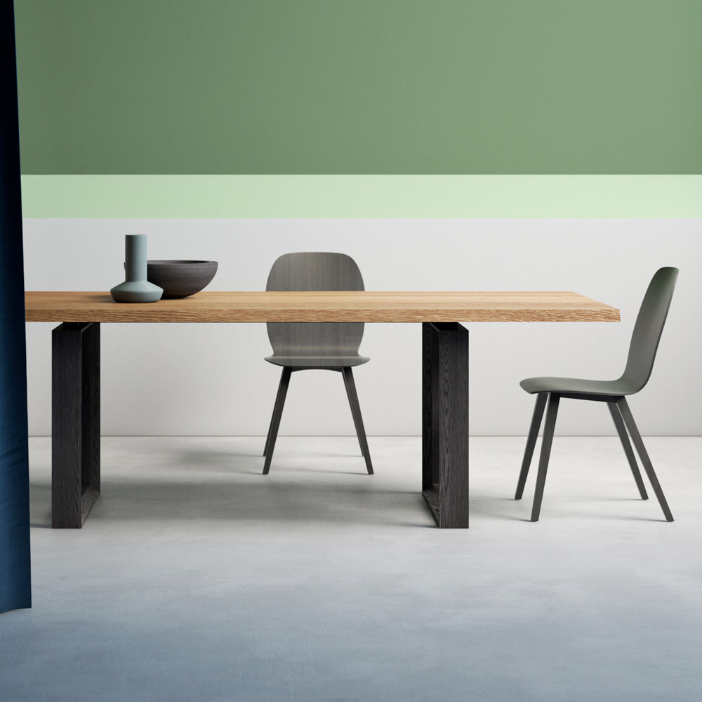 Stůl je tvarován futuristickými tvary, které prosvětlují podstatu, dodávají jí výrazné linie a perspektivy. Robustnost materiálů se promítá do kreativního impulsu vytvořeného zručnými italskými rukama, dosahující nových kvalitativních a estetických cílů. Nábytek se stává prostředkem k dosažení ideálního osobního prostoru.