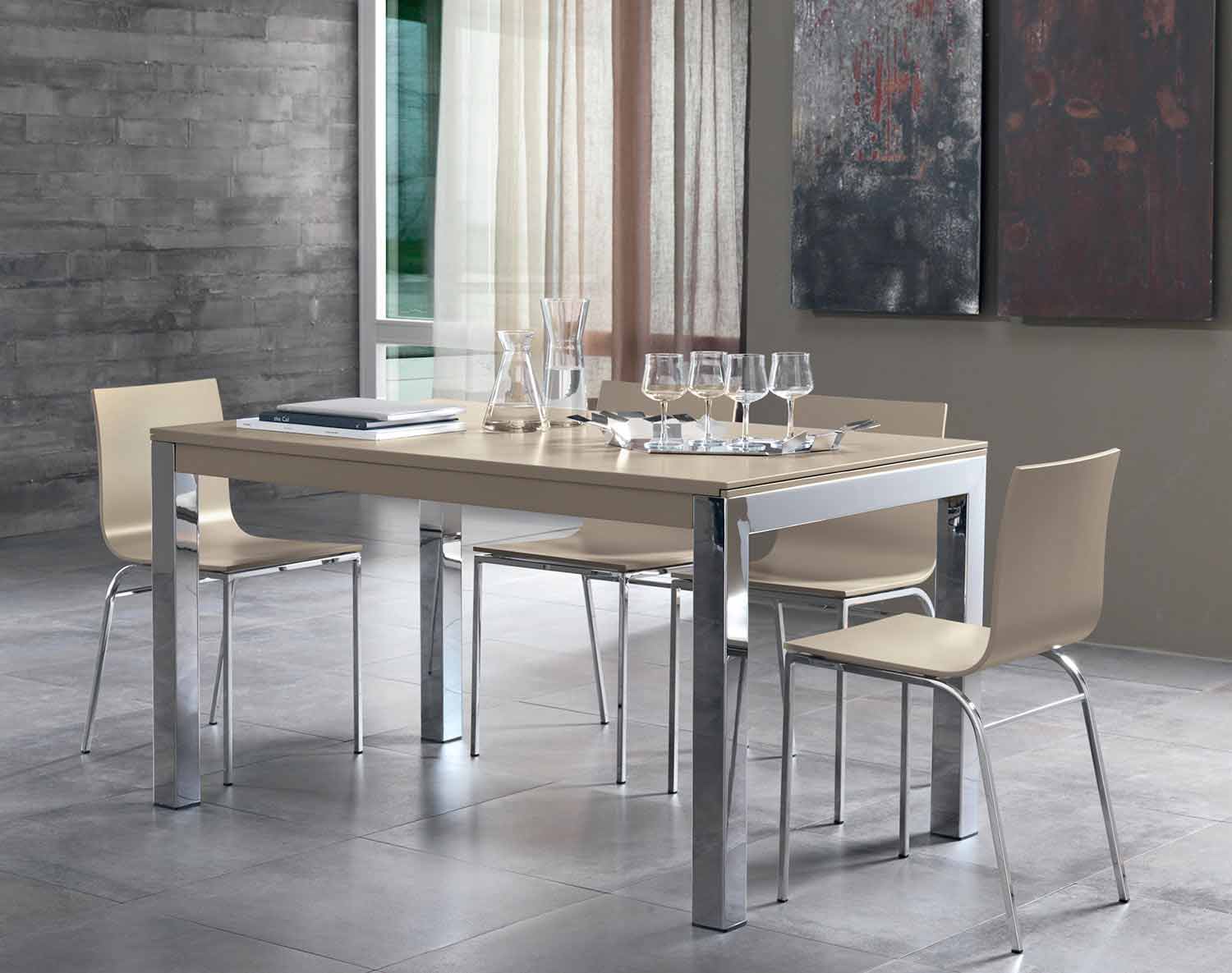 Designový kuchyňský stůl rozkládací až na 350 cm s deskou z ořechového dřeva tanganika a chromovanými kovovými nohami, vyrobený v Itálii.