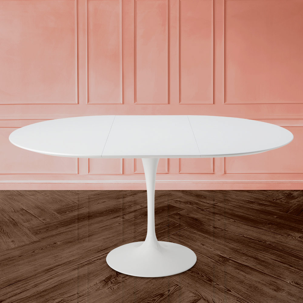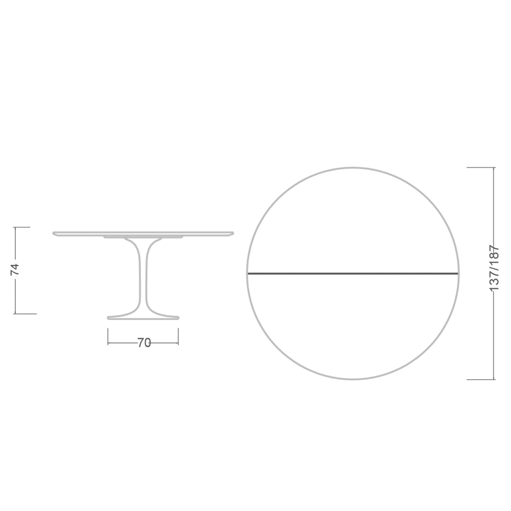 Rozkládací jídelní stůl do 187 cm s bílou deskou z tekutého lamina a bílou podnoží z leštěného hliníku zcela vyrobeno v Itálii . Tento kus nábytku odpovídá potřebám funkčnosti a přizpůsobivosti každého obytného a kuchyňského prostředí. Rafinovaně a s jednoduchými liniemi jej lze vložit do všech zařizovacích předmětů a lépe tak dotvořit každou místnost. Možnost rozšíření z něj činí jedinečný prvek, který reaguje na potřebu mít více jídelních míst, a to i díky tvaru podstavce, který podporuje vložení mnoha židlí. Tento stůl je dokonalým nápadem, jak mít něco originálního a elegantního, ale zároveň použitelného pro všechny příležitosti a události.