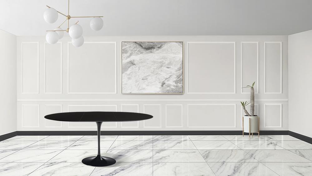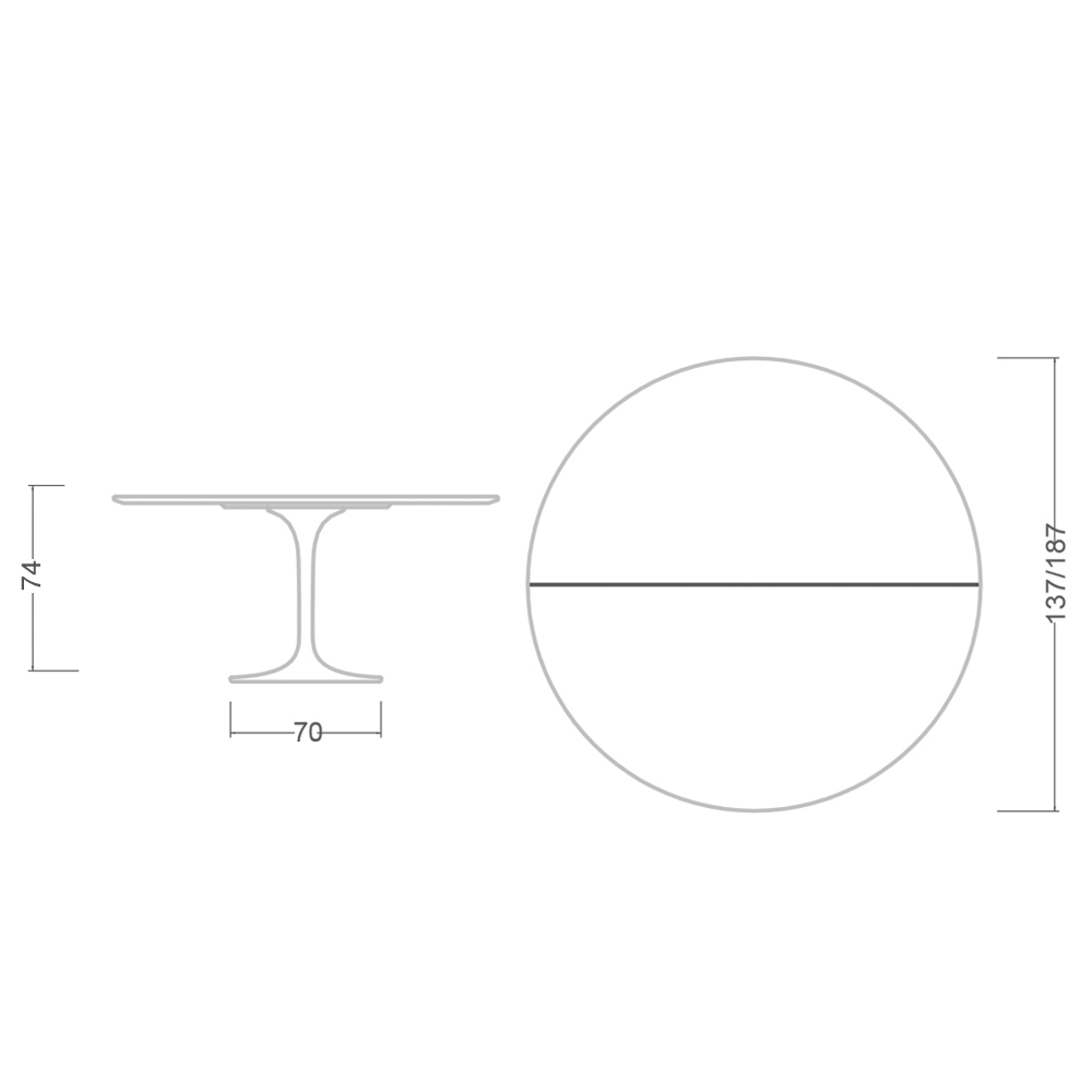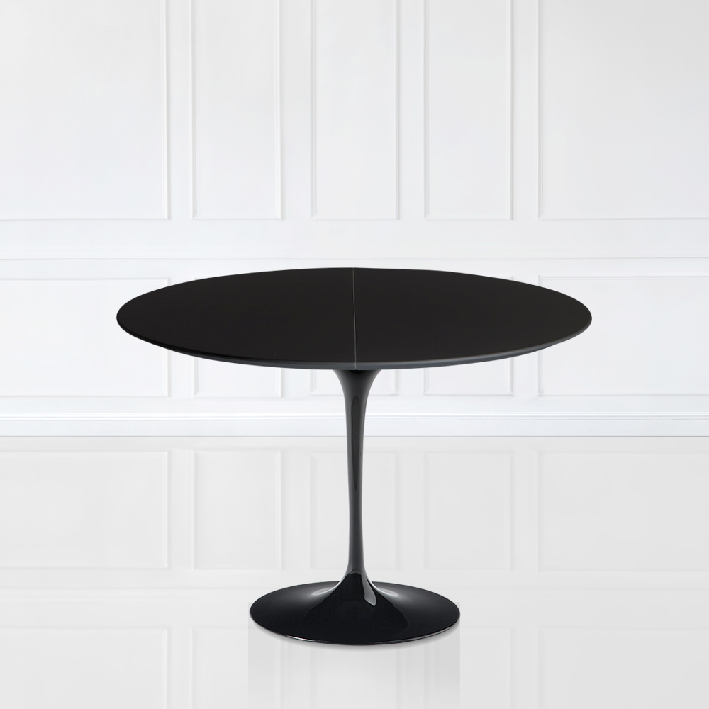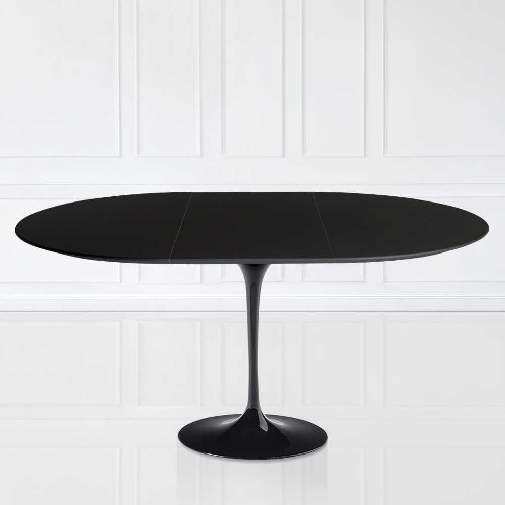 Rozkládací jídelní stůl do 187 cm s černým tekutým laminátem horní deskou a černým leštěným hliníkem podnoží zcela vyrobeno v Itálii . Tento kus nábytku odpovídá potřebám funkčnosti a přizpůsobivosti každého obytného a kuchyňského prostředí. Rafinovaně a s jednoduchými liniemi jej lze vložit do všech zařizovacích předmětů a lépe tak dotvořit každou místnost. Možnost rozšíření z něj činí jedinečný prvek, který reaguje na potřebu mít více jídelních míst, a to i díky tvaru podstavce, který podporuje vložení mnoha židlí. Tento stůl je dokonalým nápadem, jak mít něco originálního a elegantního, ale zároveň použitelného pro všechny příležitosti a události.