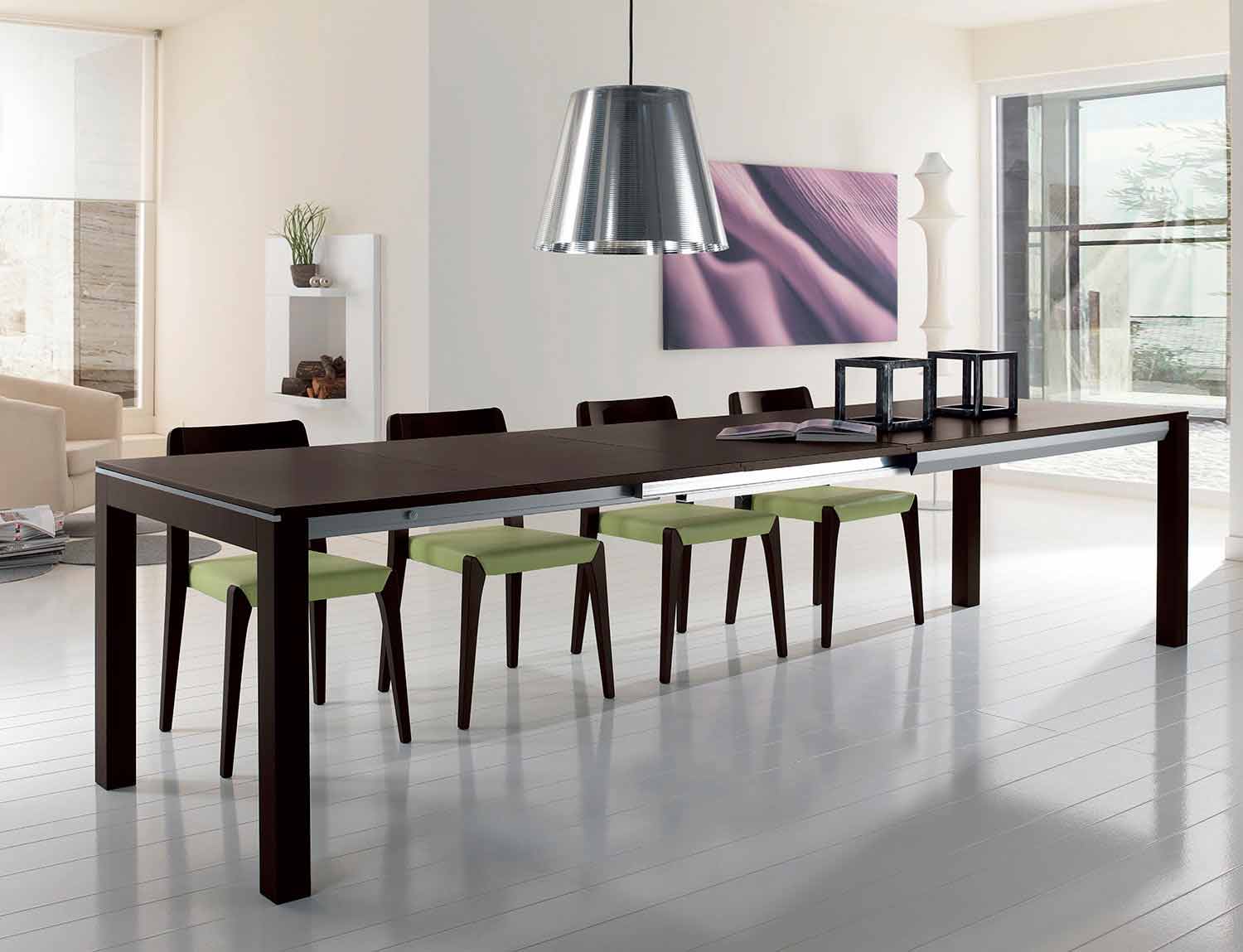 Rozkládací stůl až na 14 míst s moderním designem v jasanové dýze a šedě lakovanými bočními pásy, vyrobený v Itálii.