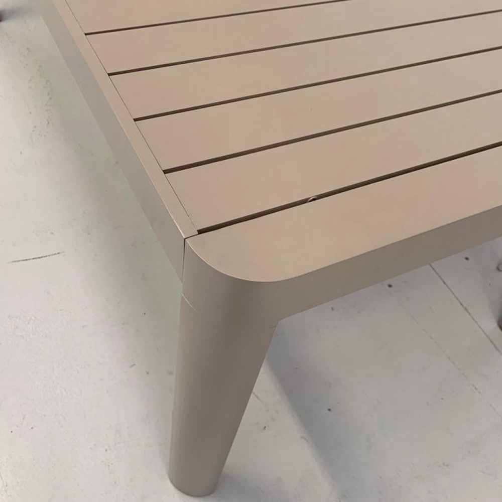 Tento rozkládací hliníkový stůl je příkladem elegantního a funkčního designu ideálního do exteriéru. Jeho povrchová úprava a čisté linie navozují pocit modernosti a prostornosti a nabízejí příjemný povrch pro každou příležitost, od rodinných jídel až po večeře s přáteli. Hliníková konstrukce zaručuje nejen vizuální lehkost , ale je také synonymem pro robustnost a odolnost .