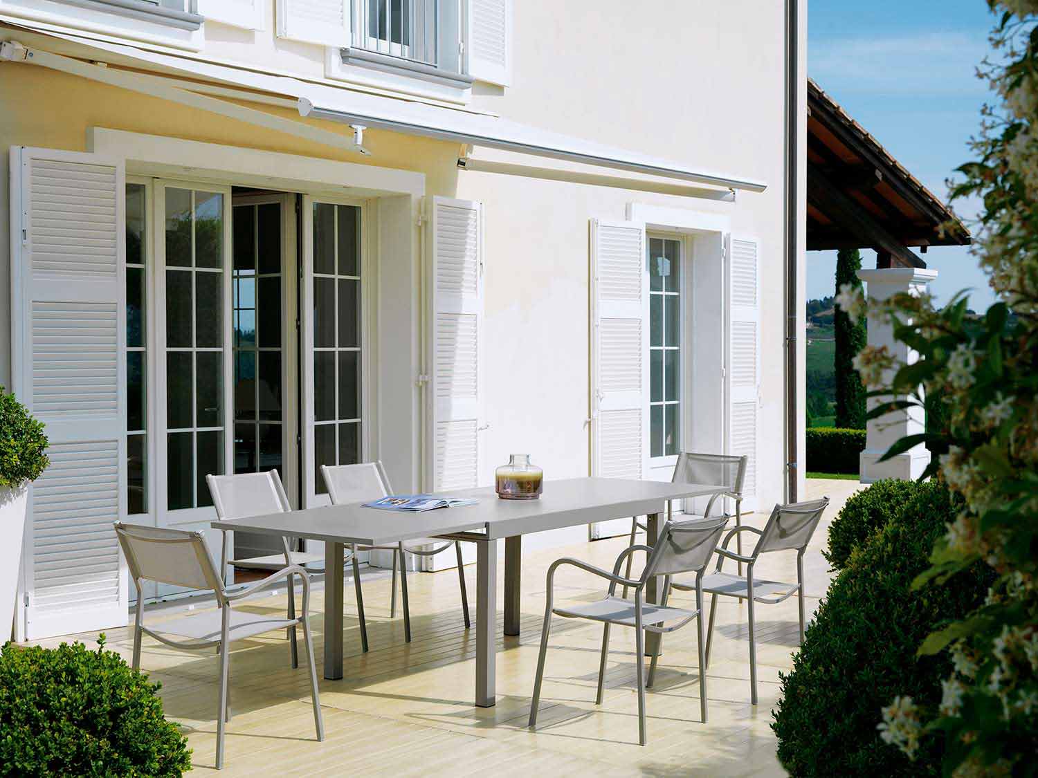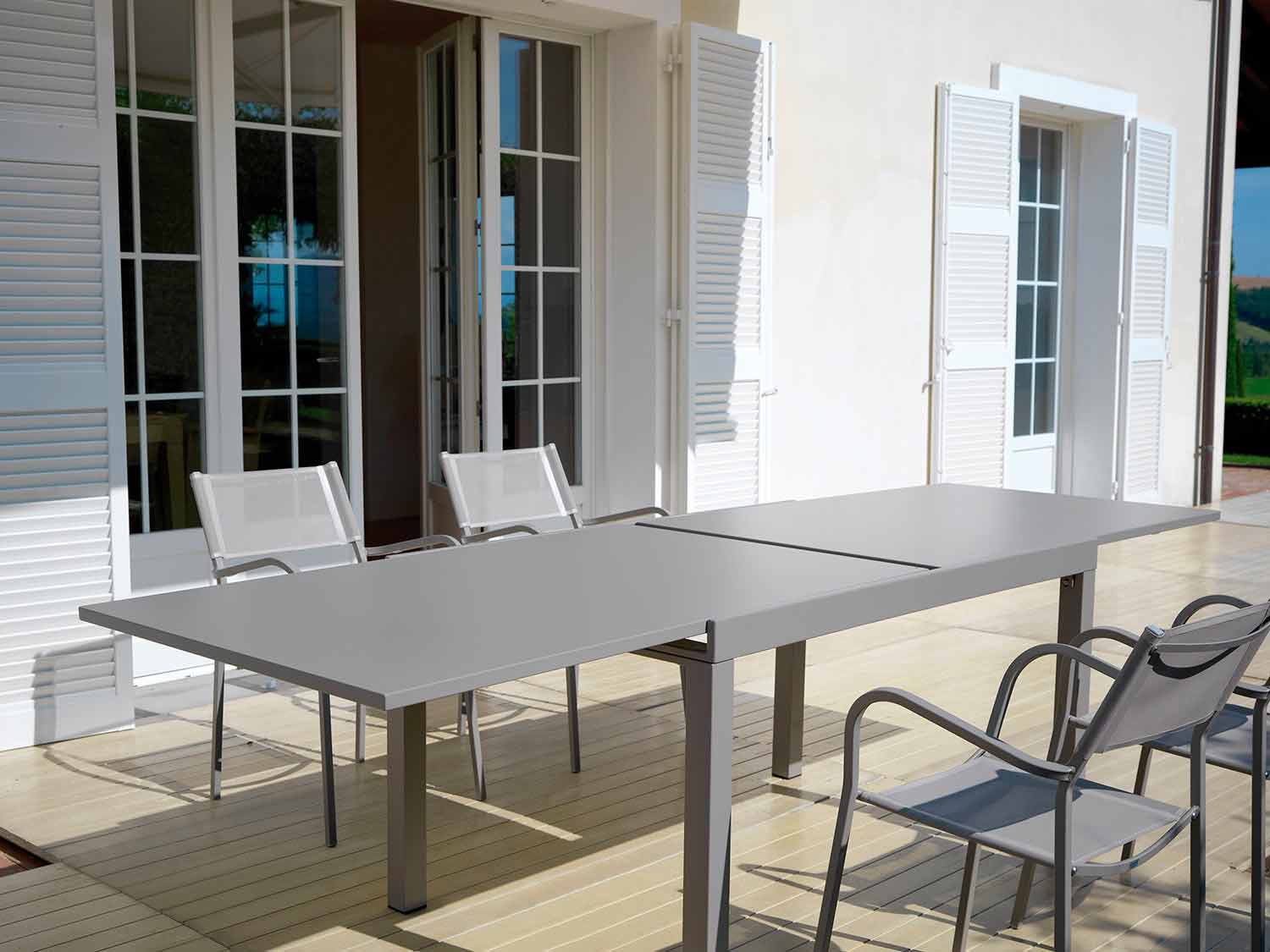 Venkovní stůl rozkládací až do 280 cm z práškově lakovaného pozinkovaného železa. Vyrobeno v Itálii.