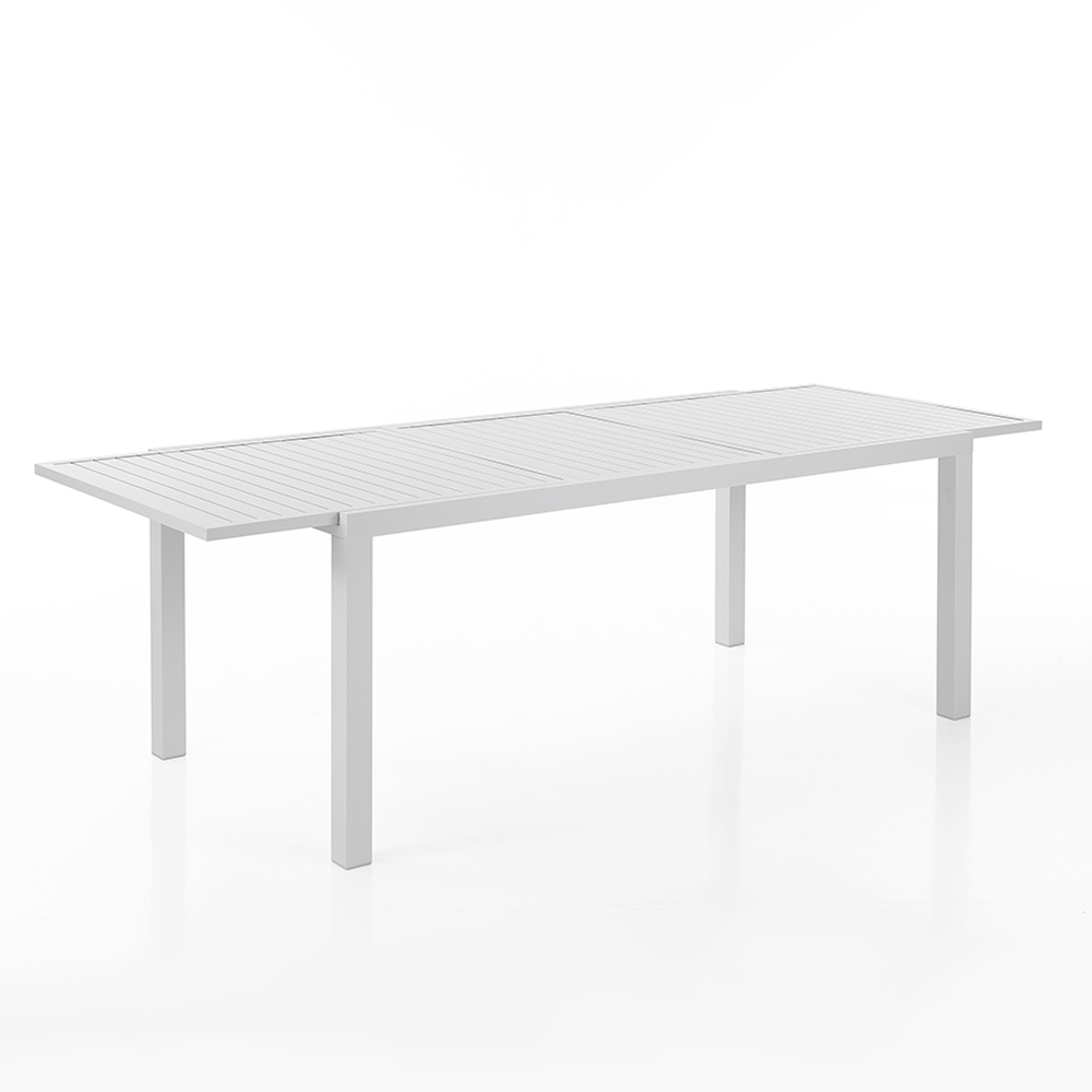 Tento zahradní stůl je triumfem minimalistické elegance a moderní funkčnosti . Se svým matným bílým povrchem a čistým designem jeho linií je tento stůl perfektním plátnem pro jakýkoli typ venkovního společenského setkání, od letních večeří až po brunche pod sluncem. Vyrobeno z odolných materiálů odolných vůči povětrnostním vlivům , zajišťuje dlouhou životnost a jednoduchou údržbu, takže se můžete bez starostí soustředit na potěšení ze zábavy.