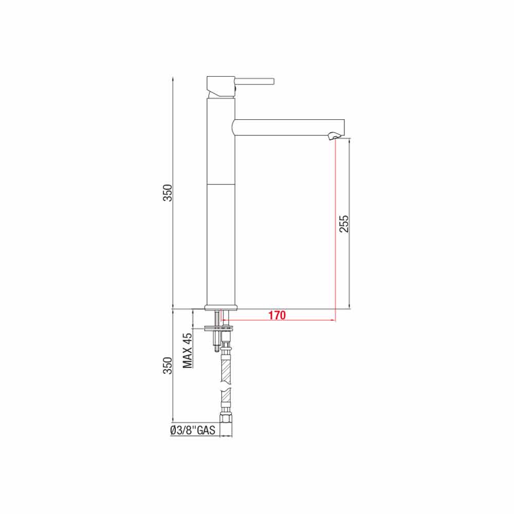 chromované mosazi s otevřenou kartuší Kerox Ø 35 mm. Je k dispozici s rozvorem různých délek, je extrémně