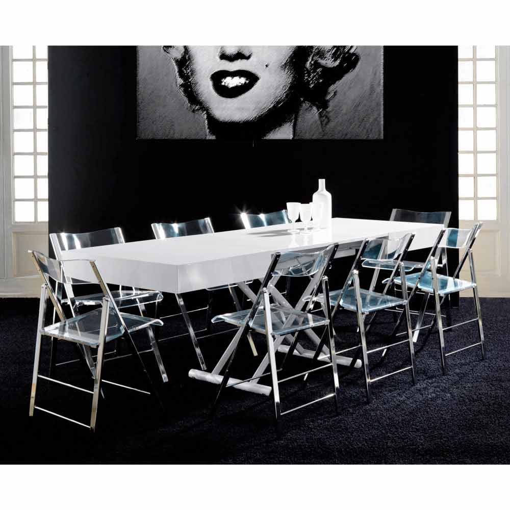 Roztahovací stůl s nastavitelnou výškou pomocí plynového čerpadla. Může být použit jako tabulky nebo jako odkládací stolek. Kovová konstrukce a nejvyšší v melaminu vysoké kvalitě.