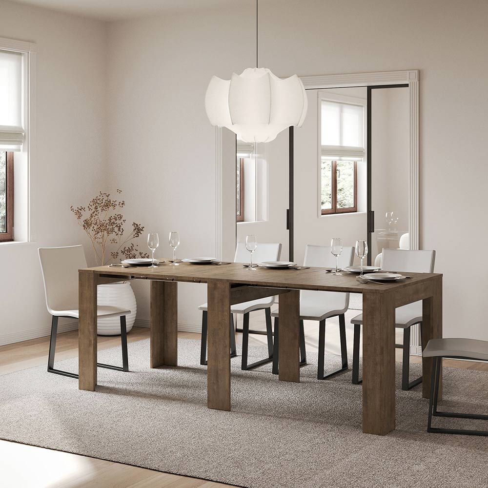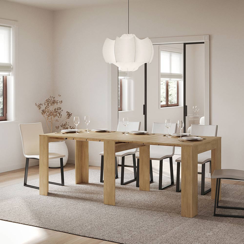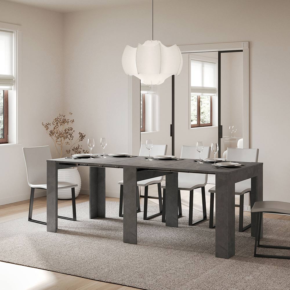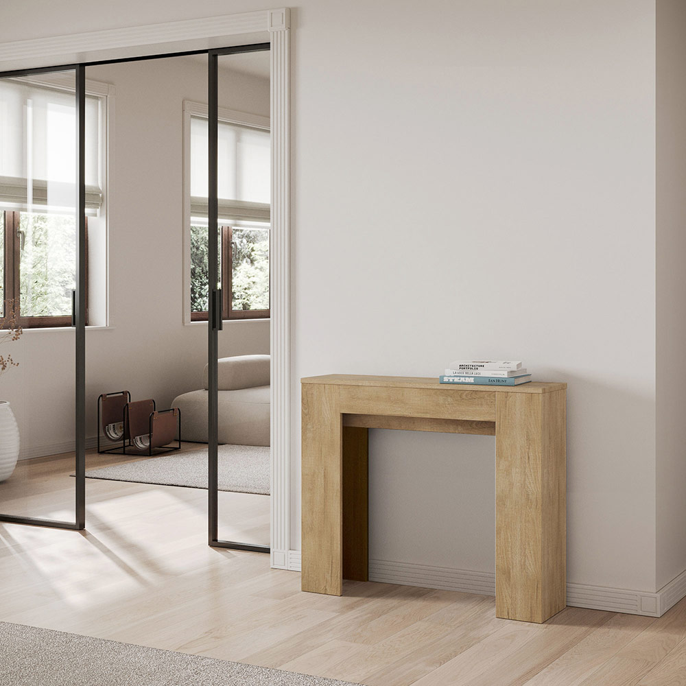 Tento rozkládací konzolový stolek è je ztělesněním funkčního a minimalistického designu. Jeho elegantní tvar a čisté linie z něj dělají univerzální kus nábytku, ideální do jakéhokoli prostoru od vstupní haly až po obývací pokoj, který nabízí představu prostoru a řádu. Konzolový stolek se snadno rozšiřuje a mění se z nenápadného kusu nábytku na praktický jídelní stůl, ideální pro pohoštění přátel a rodiny při zvláštních příležitostech. Díky této všestrannosti je ideální volbou pro ty, kteří žijí v malých prostorách, ale nechtějí se vzdát funkčnosti a stylu.