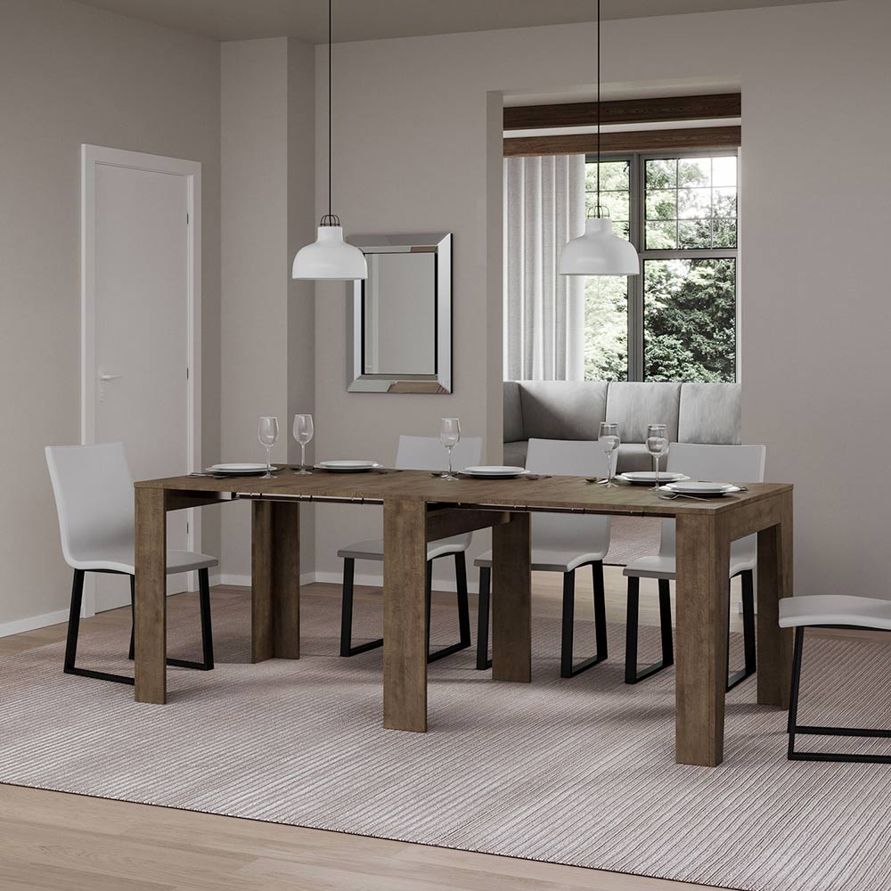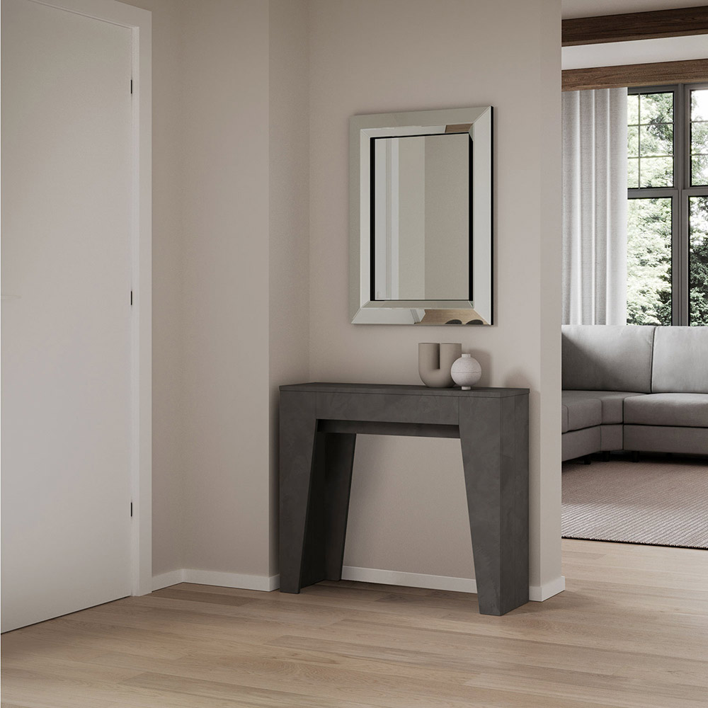 Tento rozkládací konzolový stolek è je ztělesněním funkčního a minimalistického designu. Jeho elegantní tvar a čisté linie z něj dělají univerzální kus nábytku, ideální do jakéhokoli prostoru od vstupní haly až po obývací pokoj, který nabízí představu prostoru a řádu. Konzolový stolek se snadno rozšiřuje a mění se z nenápadného kusu nábytku na praktický jídelní stůl, ideální pro pohoštění přátel a rodiny při zvláštních příležitostech. Díky této všestrannosti je ideální volbou pro ty, kteří žijí v malých prostorách, ale nechtějí se vzdát funkčnosti a stylu.