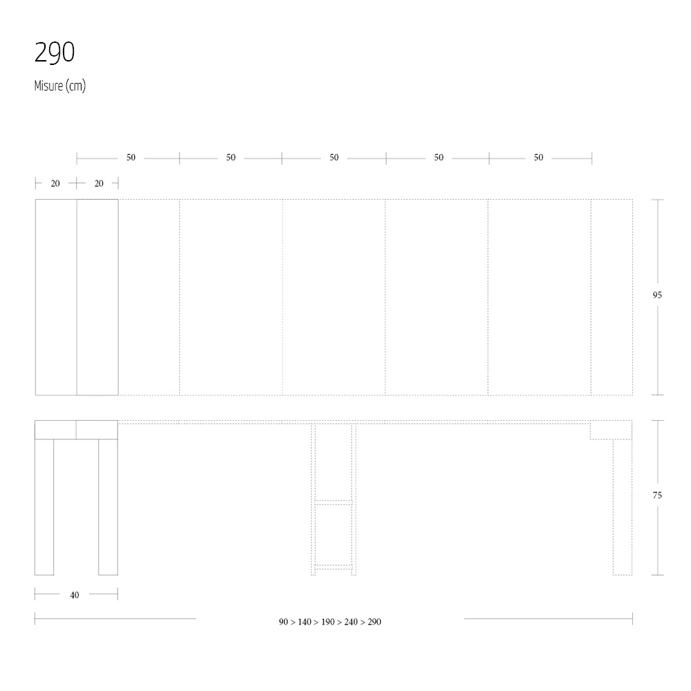 Rozšiřitelná konzole až do 290 cm z melaminového dřeva Made in Italy