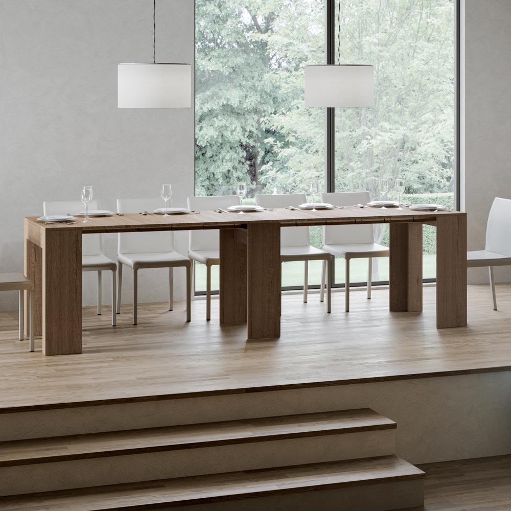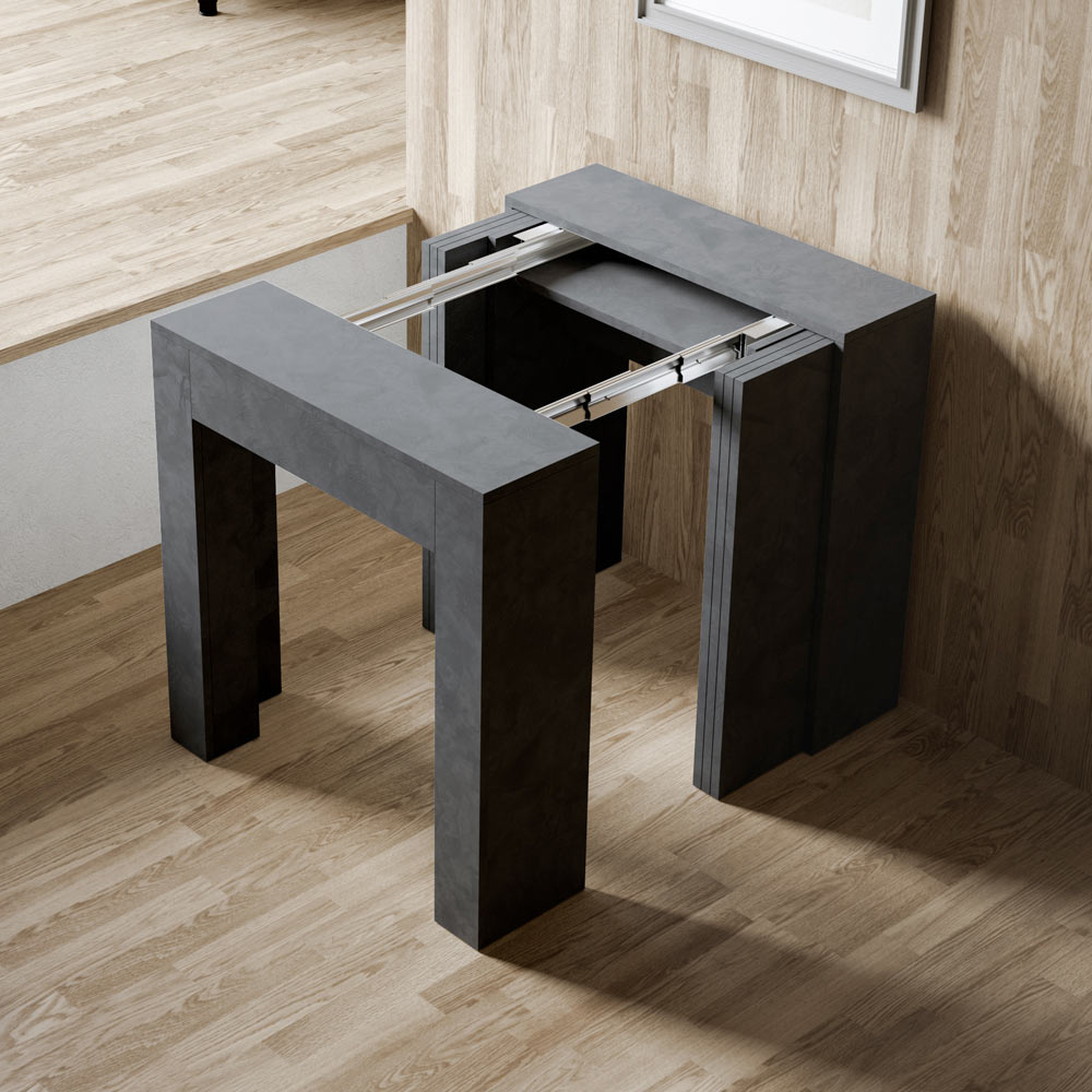 Výsuvný mechanismus je příkladem prostorové inteligence: konzolový stolek lze snadno přeměnit na větší stůl, což z něj činí všestranné řešení pro malé byty nebo místnosti vyžadující multifunkční nábytek. È je ideální pro ty, kteří ocení funkční krásu a chytrý design, který šetří místo, aniž by obětoval styl.