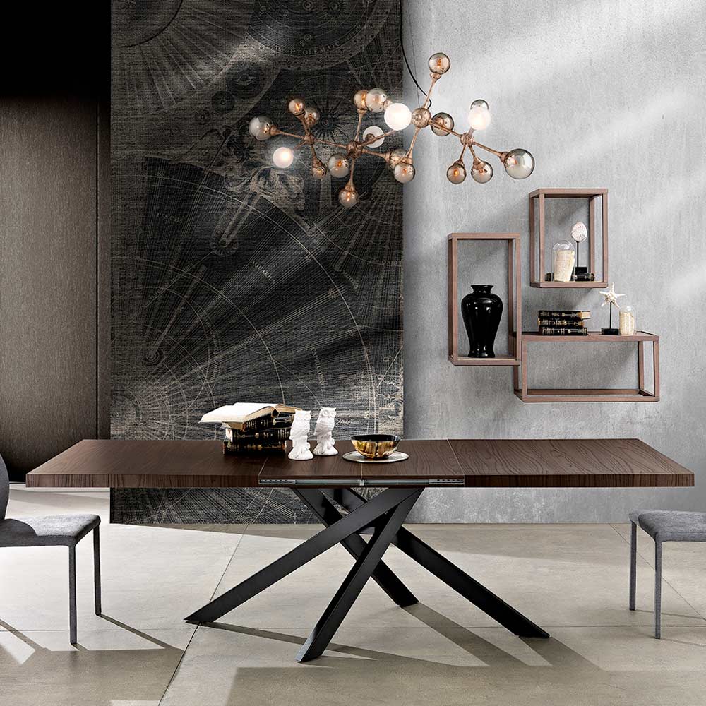 Dionigi je rozkládací stůl vyrobený v Itálii s lakovanou kovovou podnoží a skládací krabicovou melaminovou deskou (tloušťka 55 mm). K dispozici v různých povrchových úpravách: Základní: