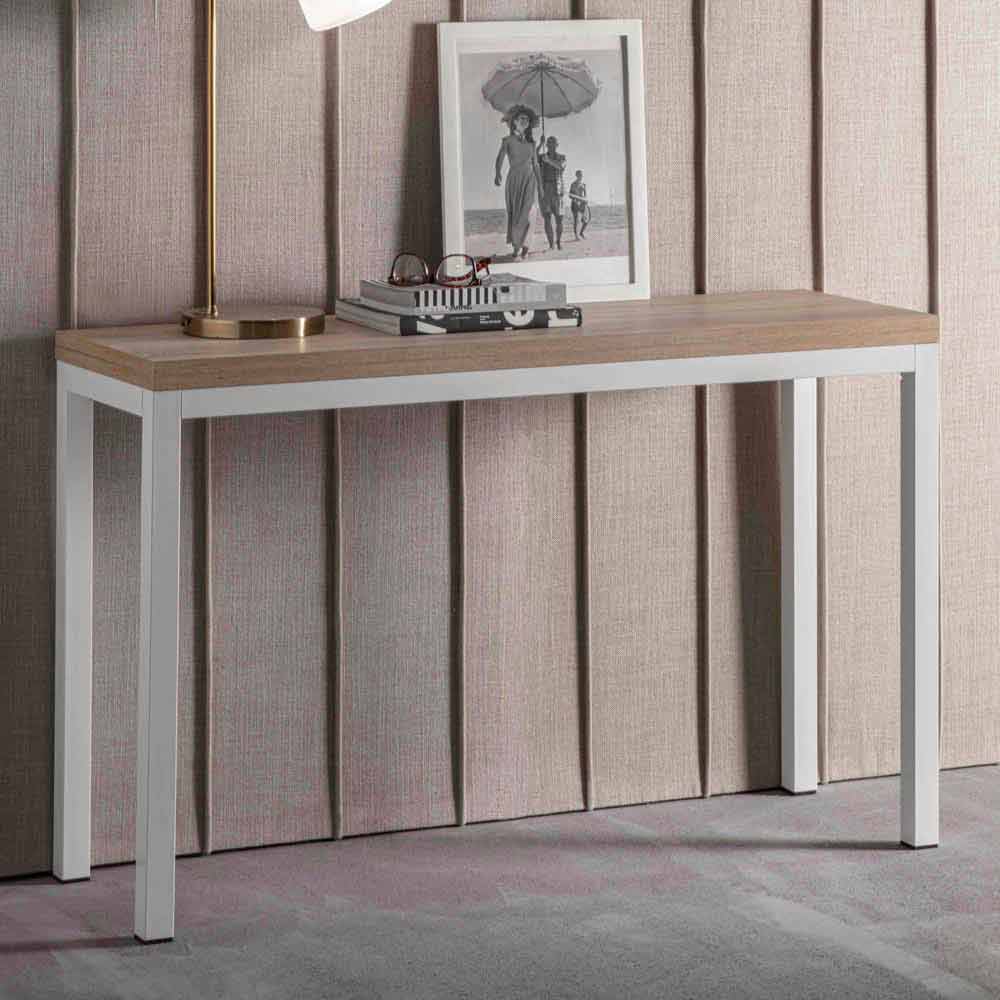 Moderní výsuvná konzola z melaminu a lakovaného kovu.