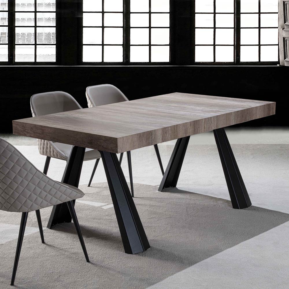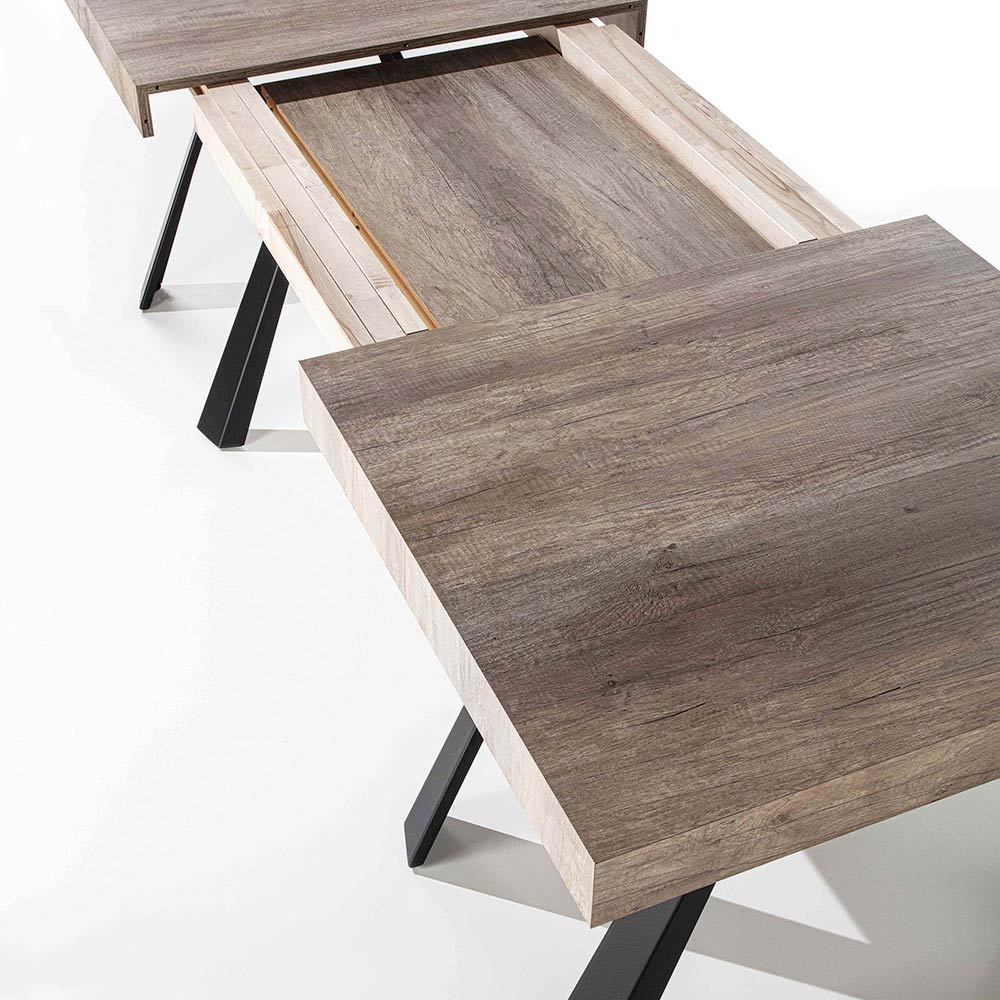 Rozkládací jídelní stůl až 500 cm z melaminového dřeva a lakovaného kovu.