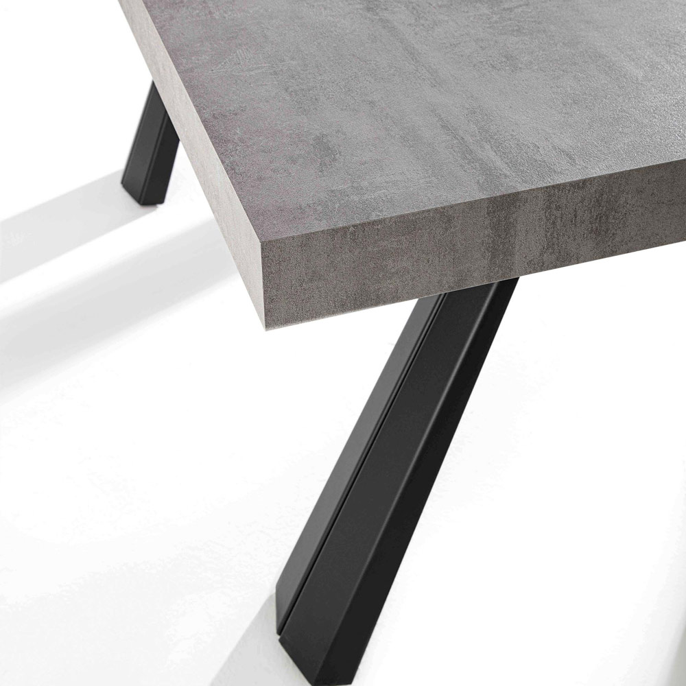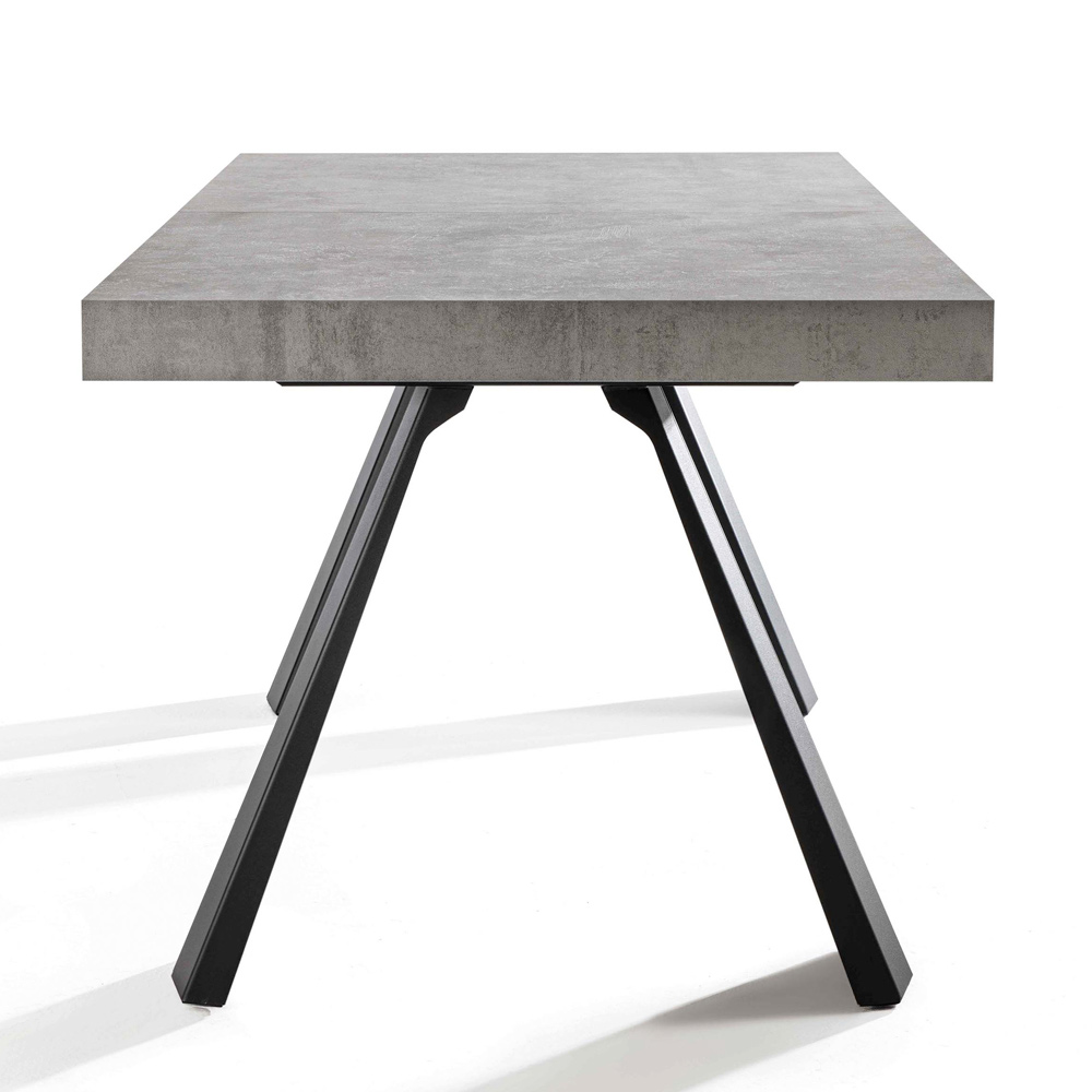 černého lakovaného kovu . Jeho zvláštnost představuje možnost prodloužení topu až na maximální délku 410 nebo 500 cm díky nástavcům ve stejné barvě, což umožňuje ubytovat až 18 osob zajišťujících skvělé obědy nebo večeře ve společnosti při zachování menších rozměrů Zavřeno. . Styl, který charakterizuje design, je založen na