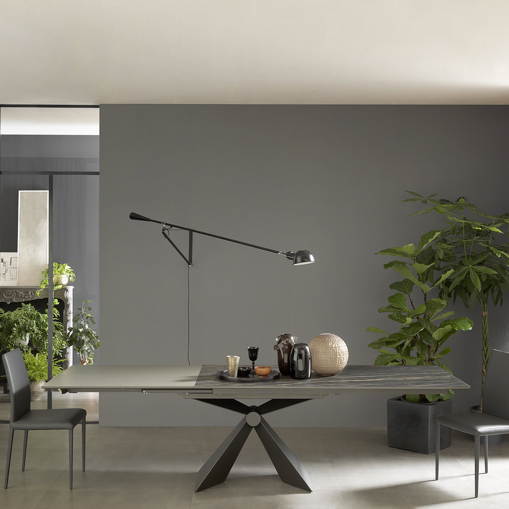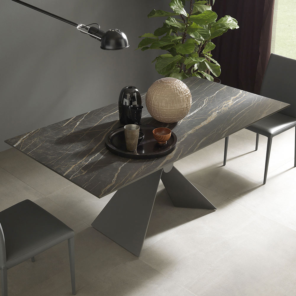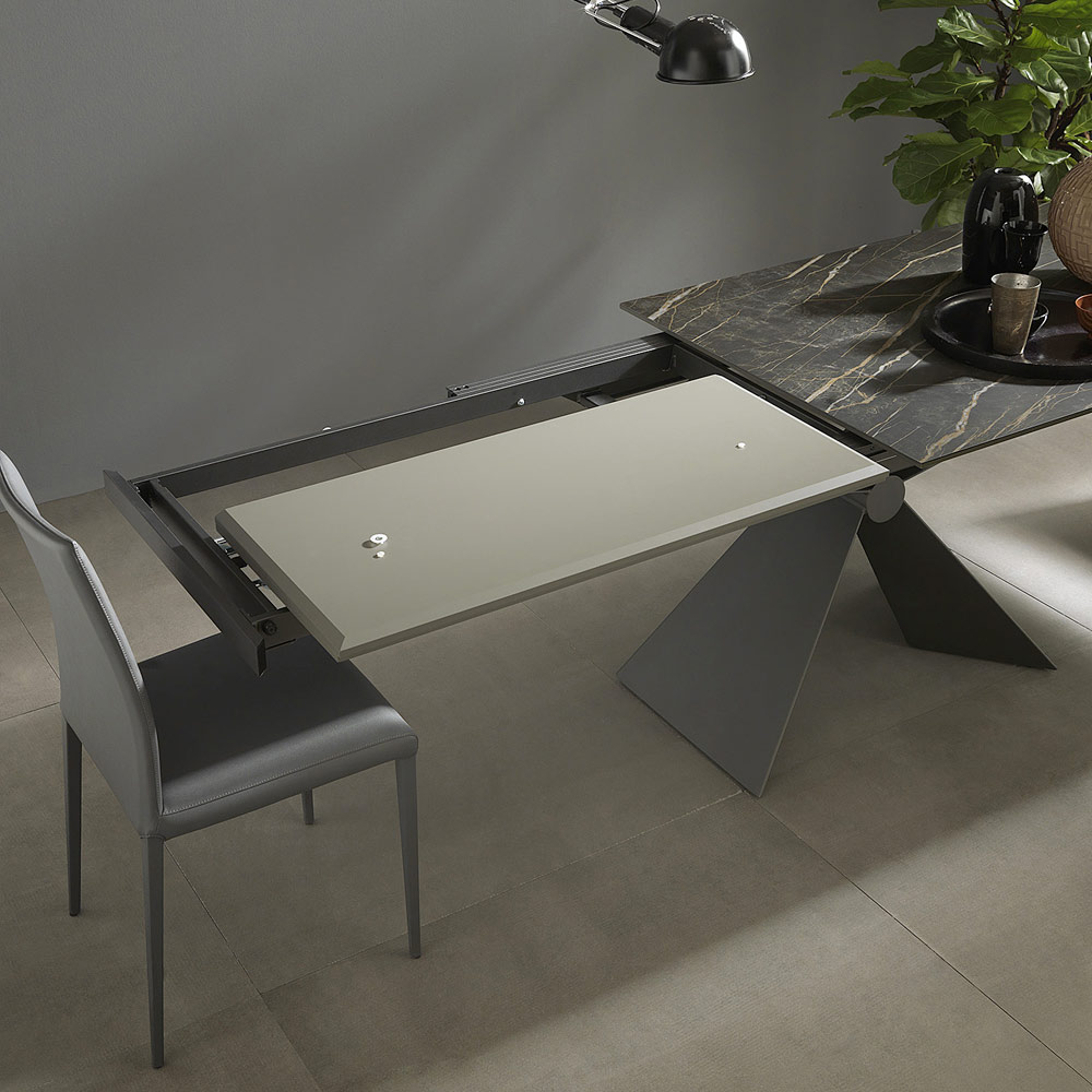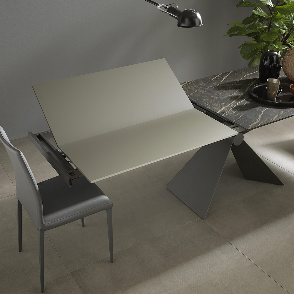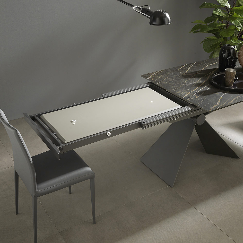 Moderní rozkládací jídelní stůl z keramiky a kovu Made in Italy.