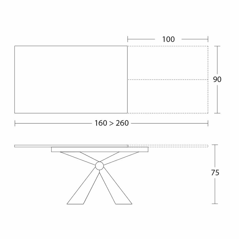 - Š 160/260 x H 90 x V 75 cm;