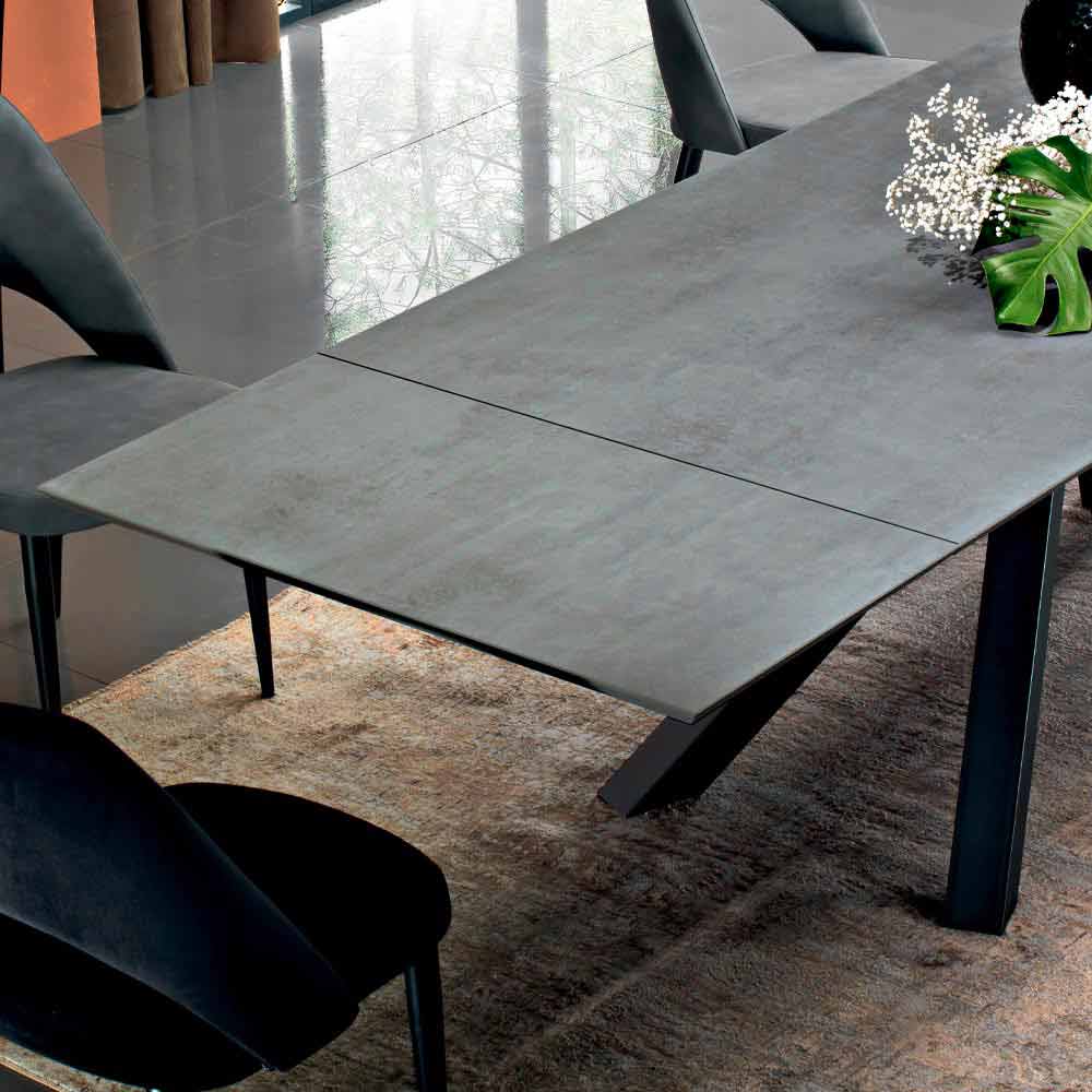 Rozkládací jídelní stůl s hpl laminátovou deskou a ocelovou podnoží, vysoká kvalita Made in Italy.