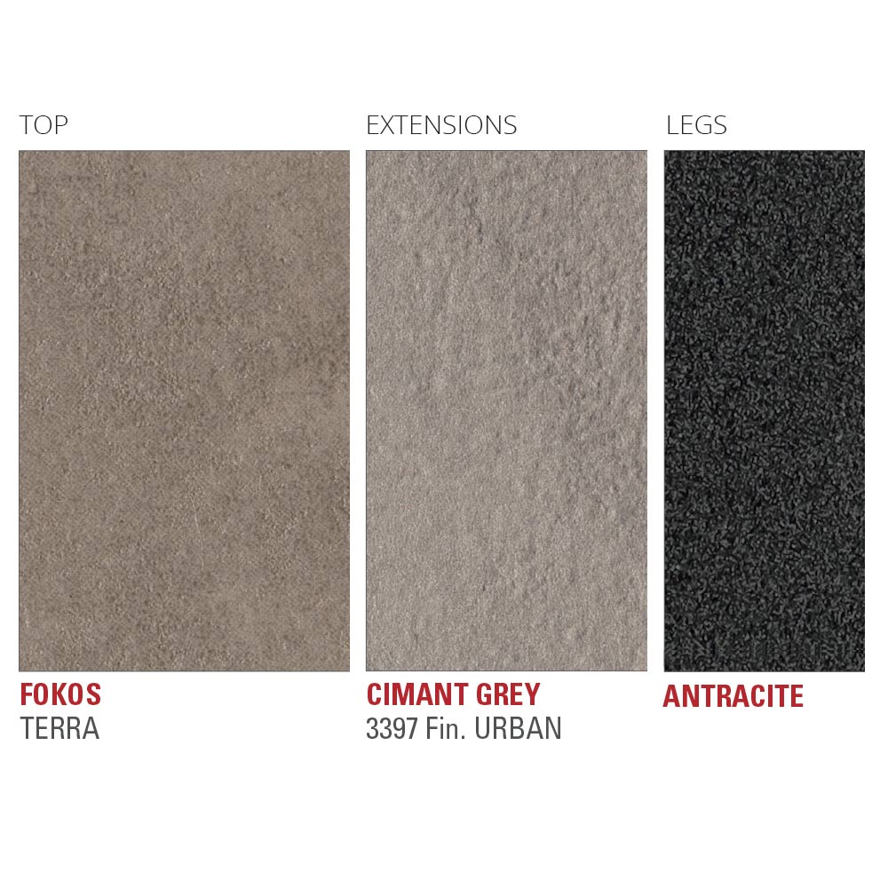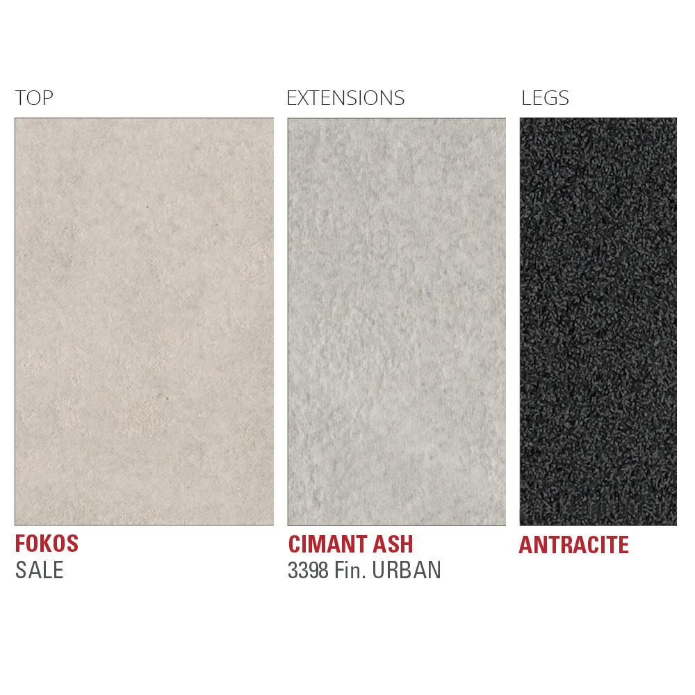 prodlužovací top , který může dosáhnout délky 240 cm, což z něj dělá perfektní nápad pro ty, kteří milují organizování obědů a večeří s přáteli a požadují řešení, které je stejně funkční jako moderní a dokáže vytvořit nádherný harmonii s okolním nábytkem. K podtržení jeho skvělé estetiky slouží laminovaná deska,