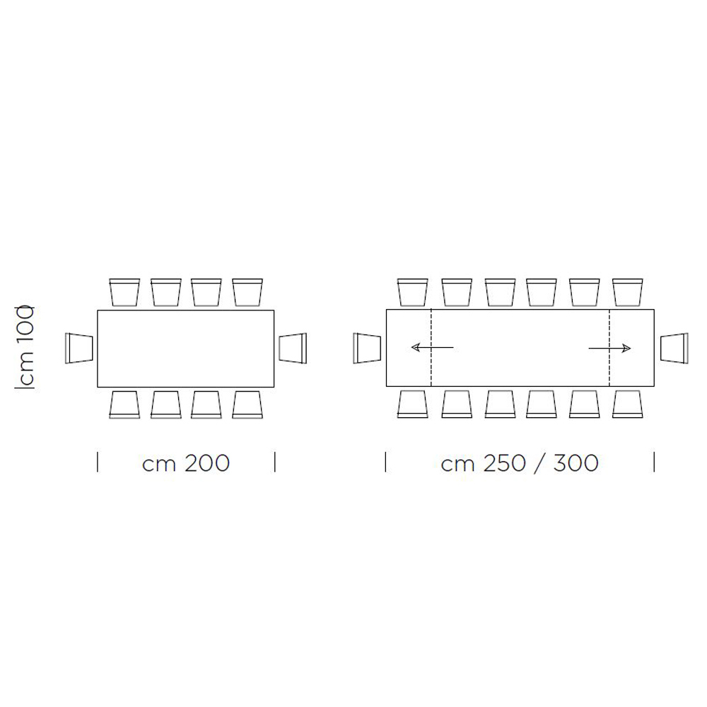 vynikající praktickou stránkou , aniž by byl zanedbáván základní estetický aspekt, který umožňuje, aby se tento stůl stal středobodem každé moderní jídelna nebo kuchyně. Rozšiřitelná deska až na 300 cm zvyšuje její funkčnost, umožňuje ubytovat až