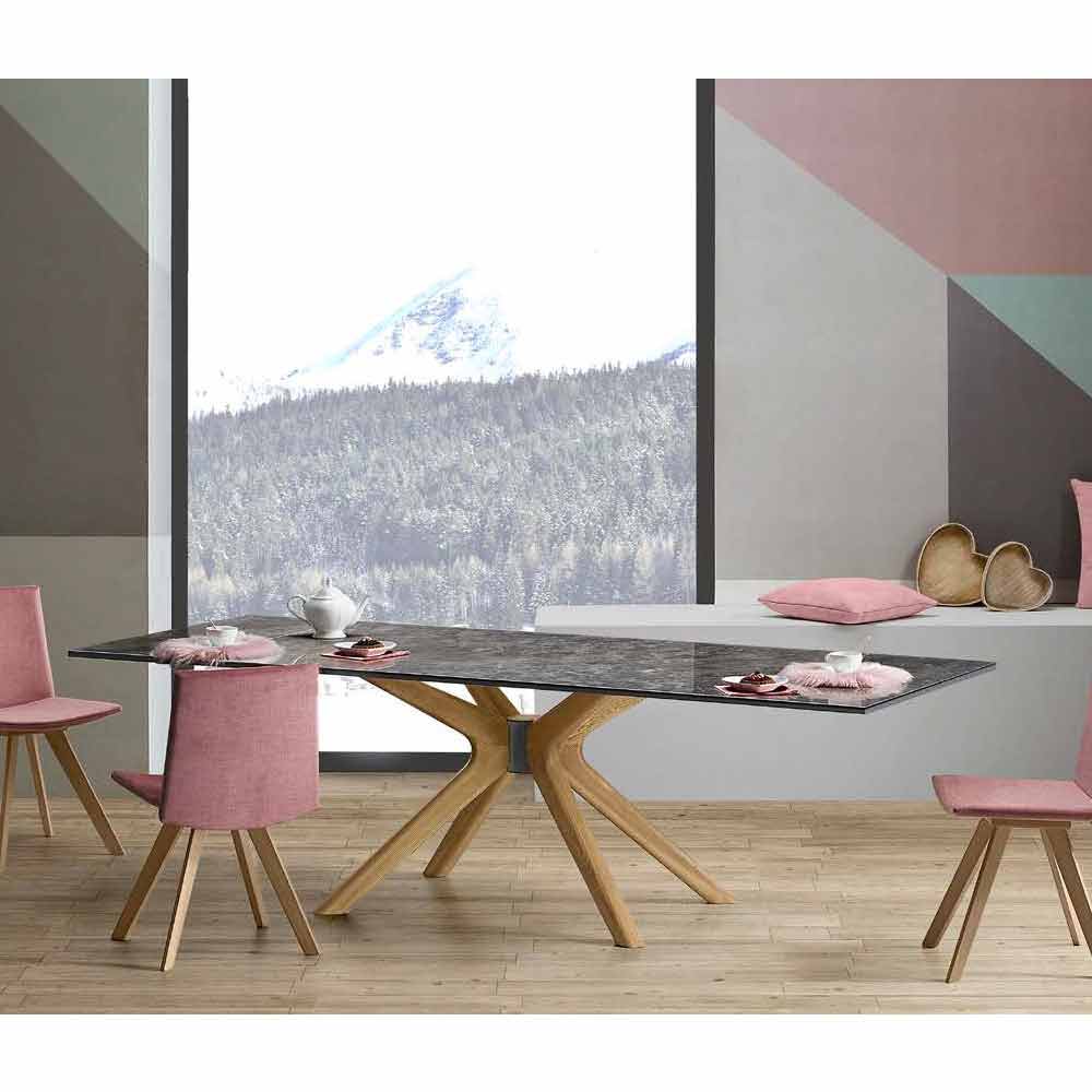 Moderní jídelní stůl rozšiřitelný až na 260 cm s kameninovou deskou, vysoce kvalitní položka Made in Italy.