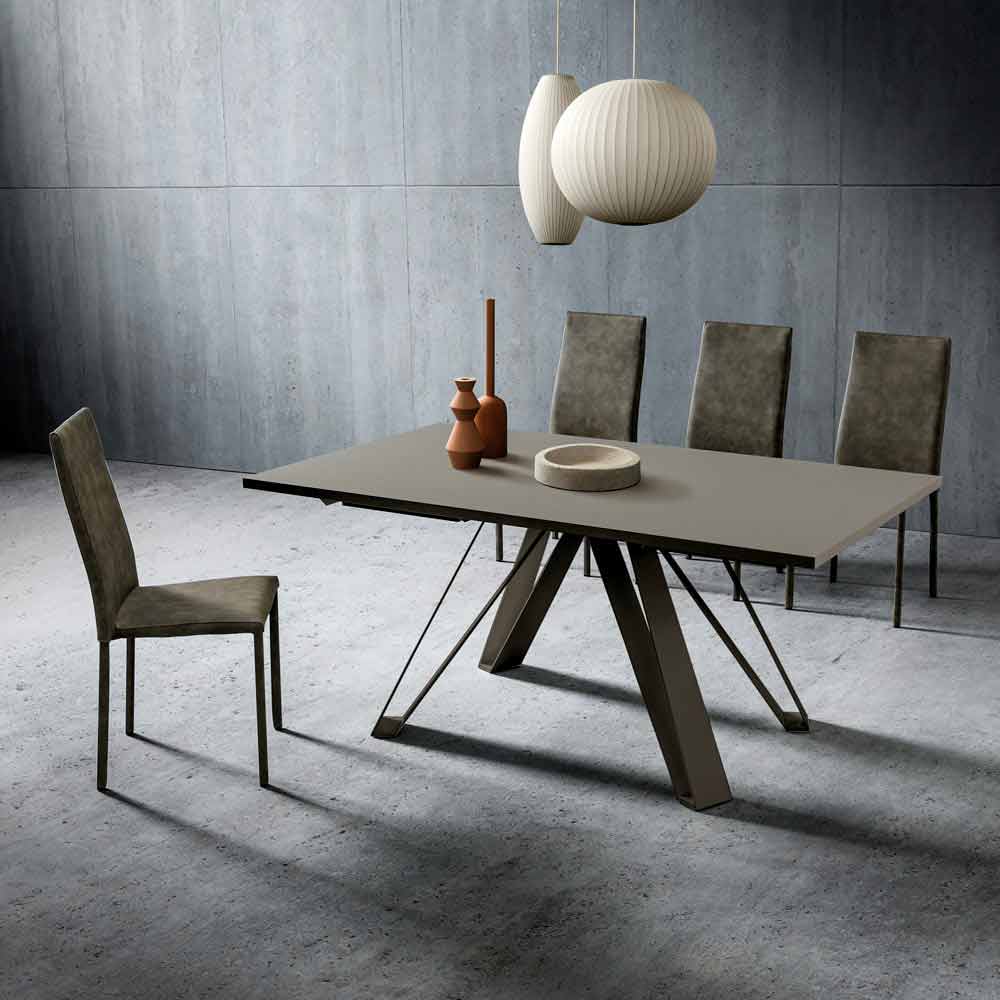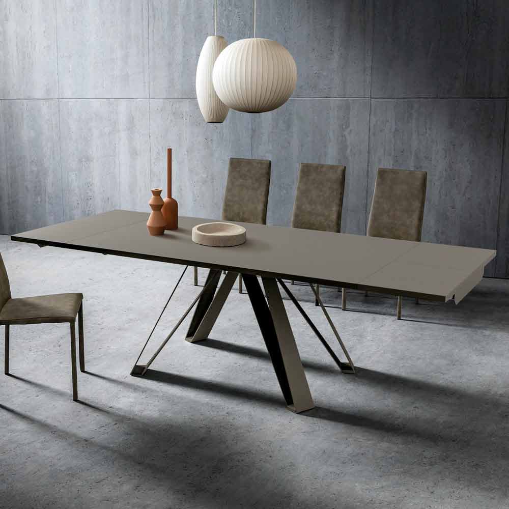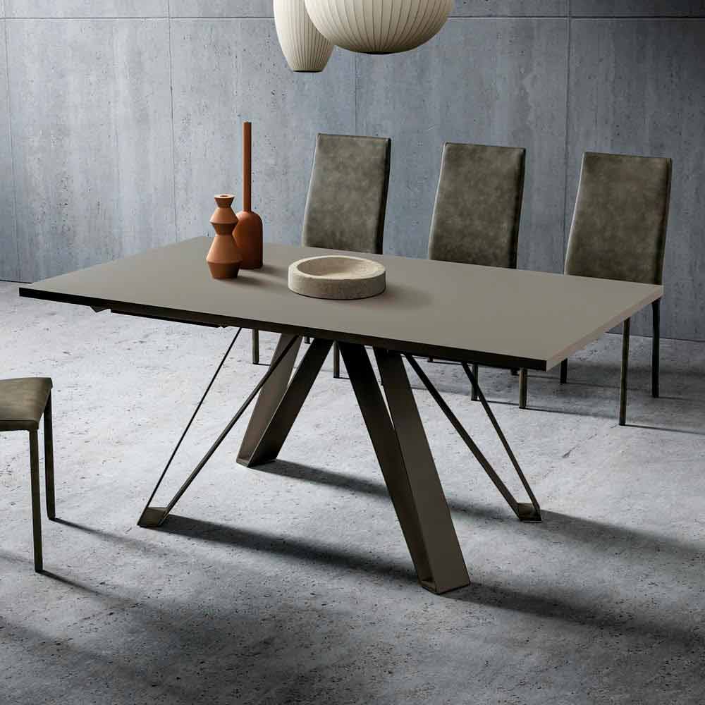 Rozkládací kuchyňský stůl z fenix a lakovaného kovu, luxusní Made in Italy.