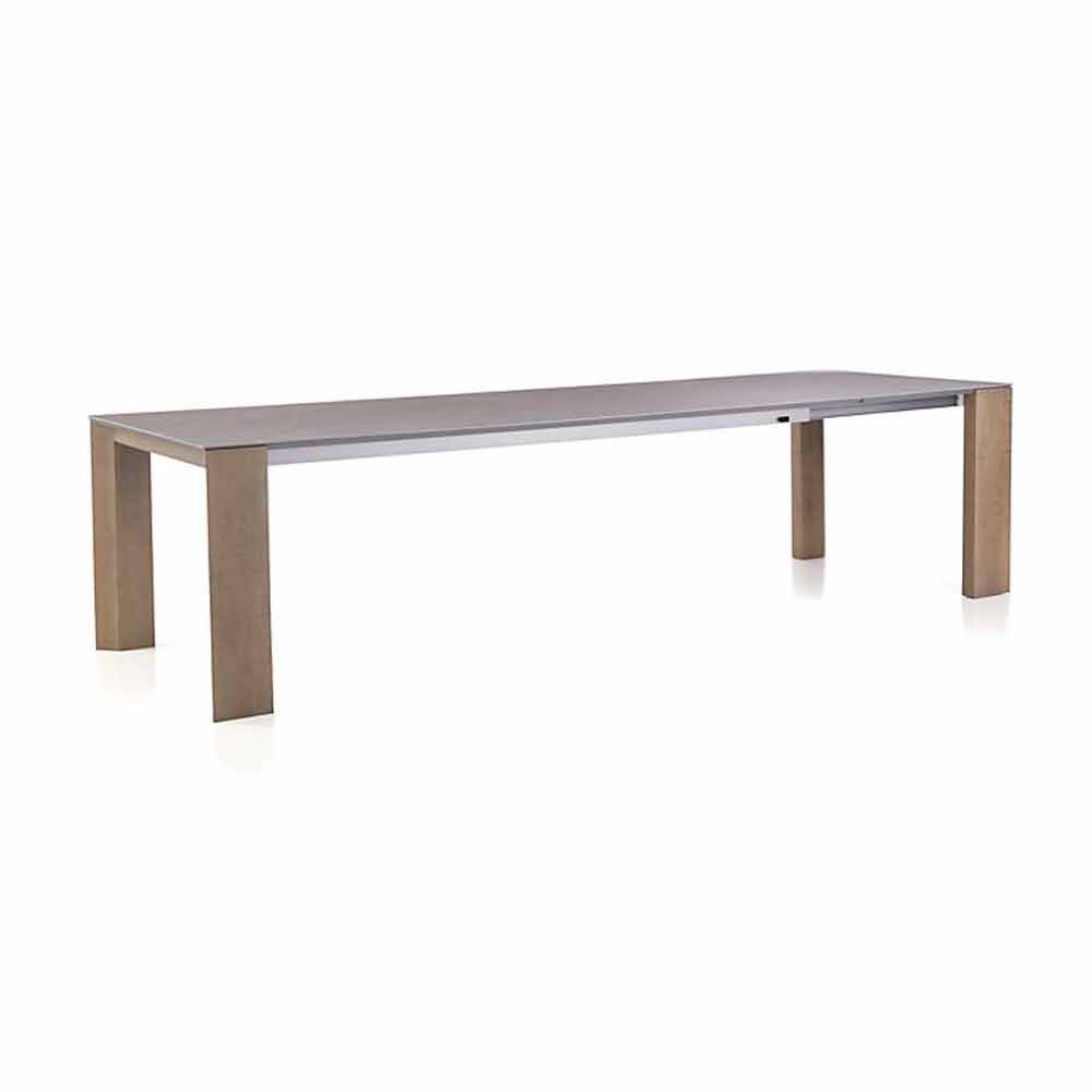 Myšlenkou tohoto typu kolekce stolů, se skutečně důležitými rozměry až do délky 300 cm, je nabídnout snadno dosažitelnou službu rozšiřitelnosti. Elegance je také přítomna v podlouhlé poloze. Tato jednoduchost funkce rozšiřitelnosti je umožněna použitím hliníkového rámu s integrovanými vodítky, který kombinuje ušlechtilé tradiční materiály, jako je dřevo a keramika, prostřednictvím moderního designu, který vydrží v průběhu času.