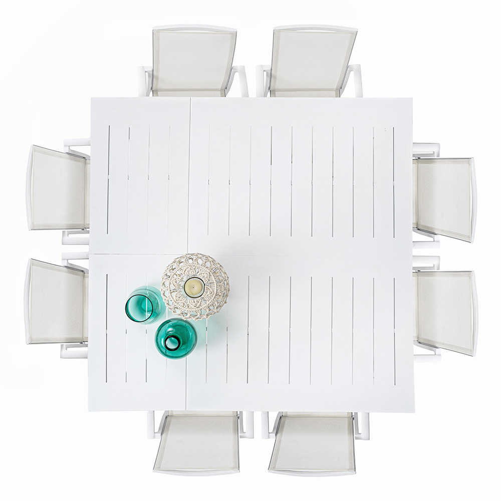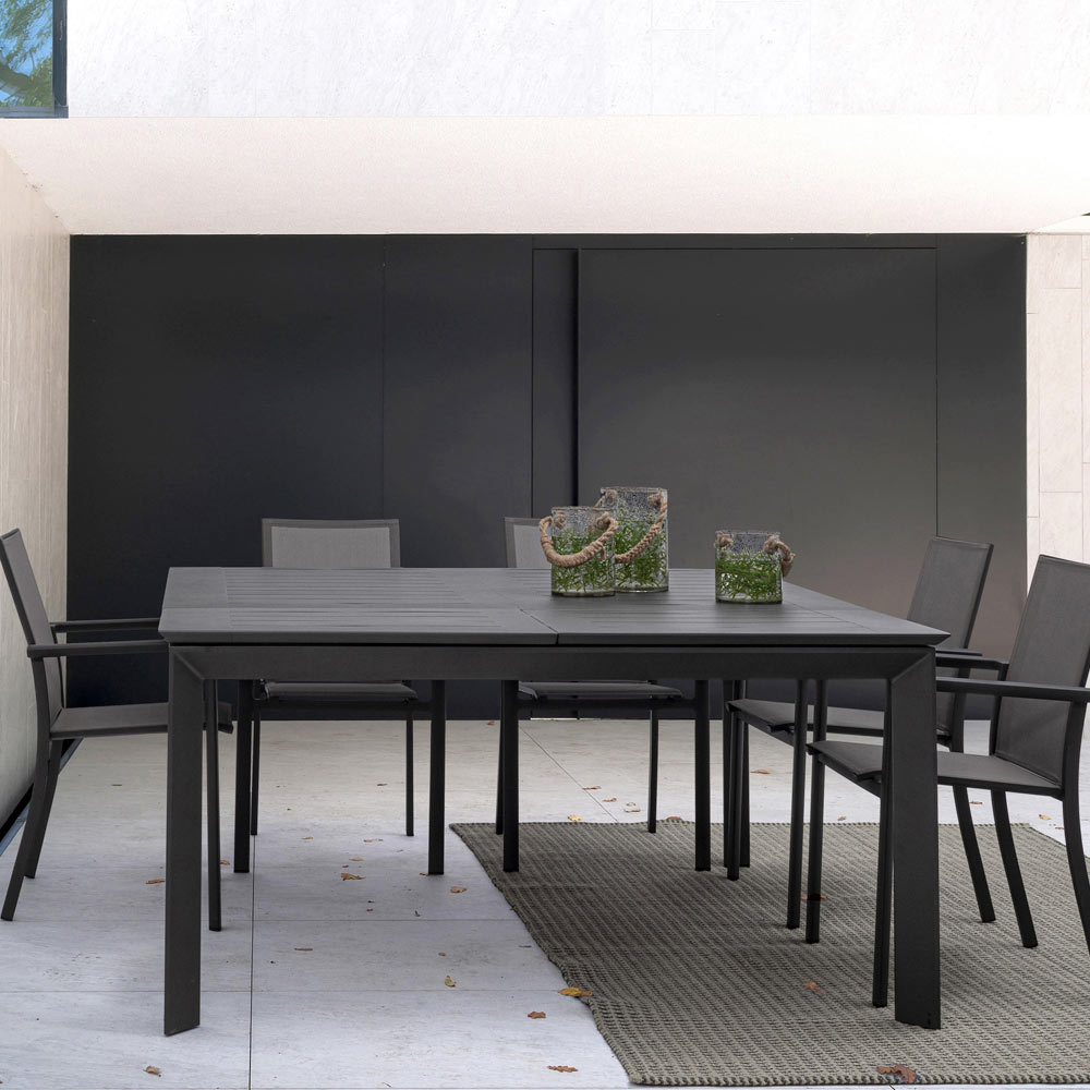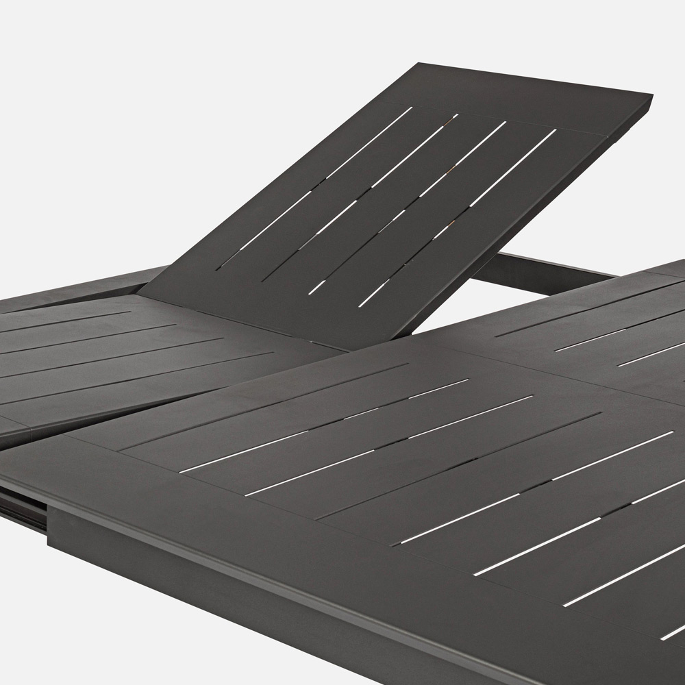 Roztažitelný venkovní jídelní stůl z vysoce kvalitního lakovaného hliníku.