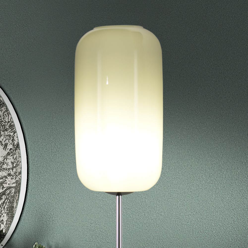 Stojací lampa ručně vyrobená z foukaného skla v pecích benátské laguny v Itálii podle starověkých tradic zpracování muránského skla předávaných zručnými řemeslníky.