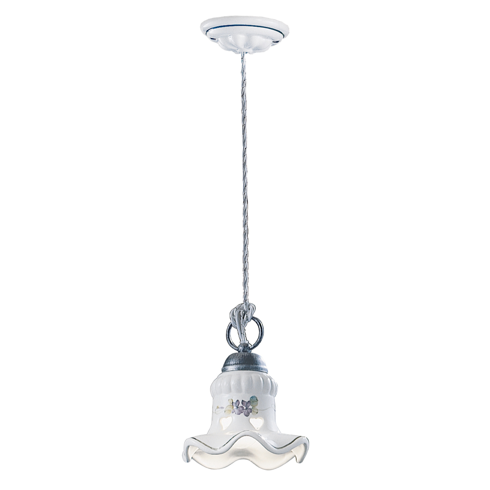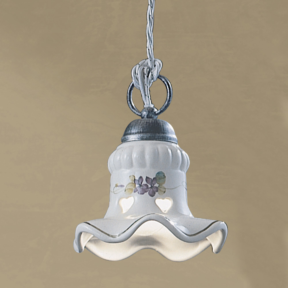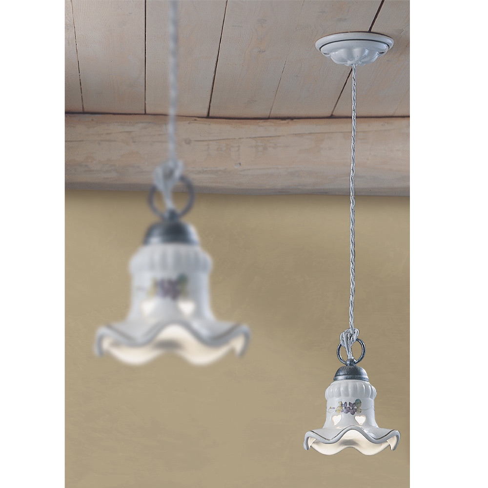 Ručně zdobená závěsná lampa ze železa a keramiky, vyrobená v Itálii firmou Ferroluce.