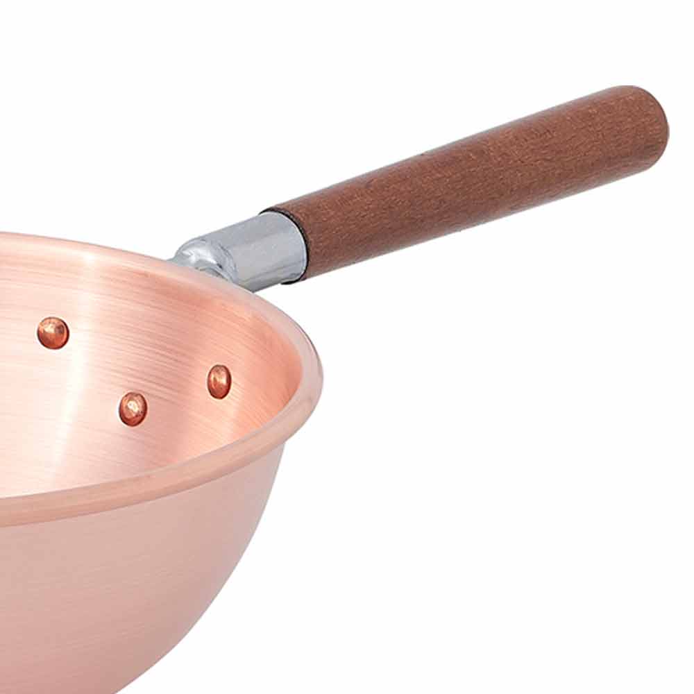 Bastardella z masivní matné mědi a dřevěnou rukojetí 26 cm vyrobená v italské kvalitě.