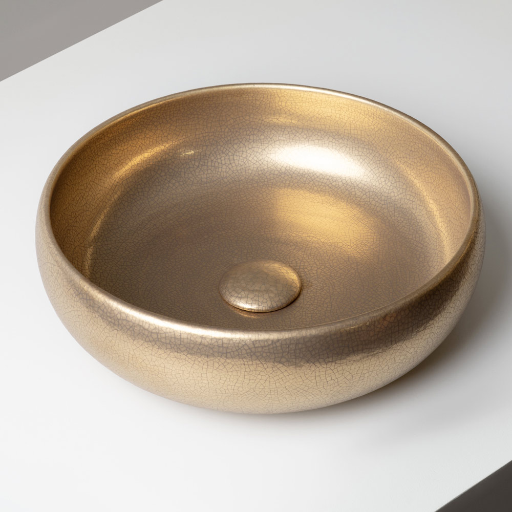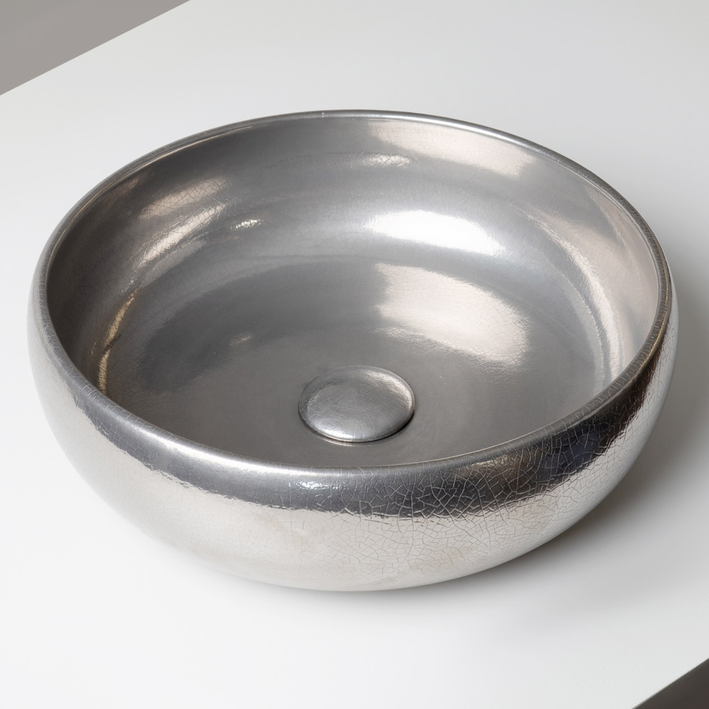 Povrch je zdoben rafinovanými metalickými krakelovacími povrchy , které jsou aplikovány jak uvnitř, tak i vně dřezu. Mikropraskliny ve smaltu vytvářejí hluboké, duhové odlesky, které dodávají výrobku luxusní a vysoce dekorativní vzhled. Každý dřez je jedinečný díky přirozeným variacím vytvořeným řemeslným zpracováním.