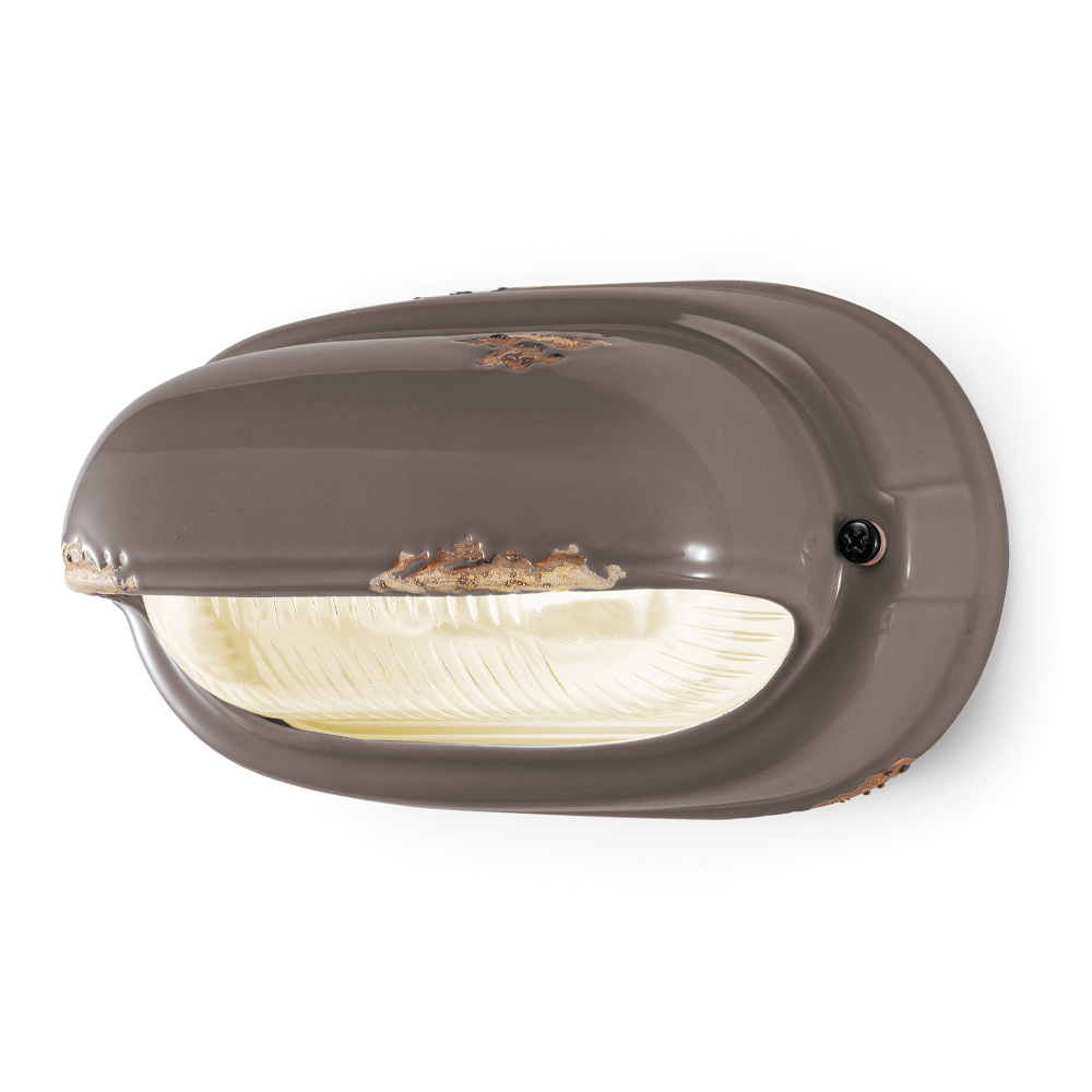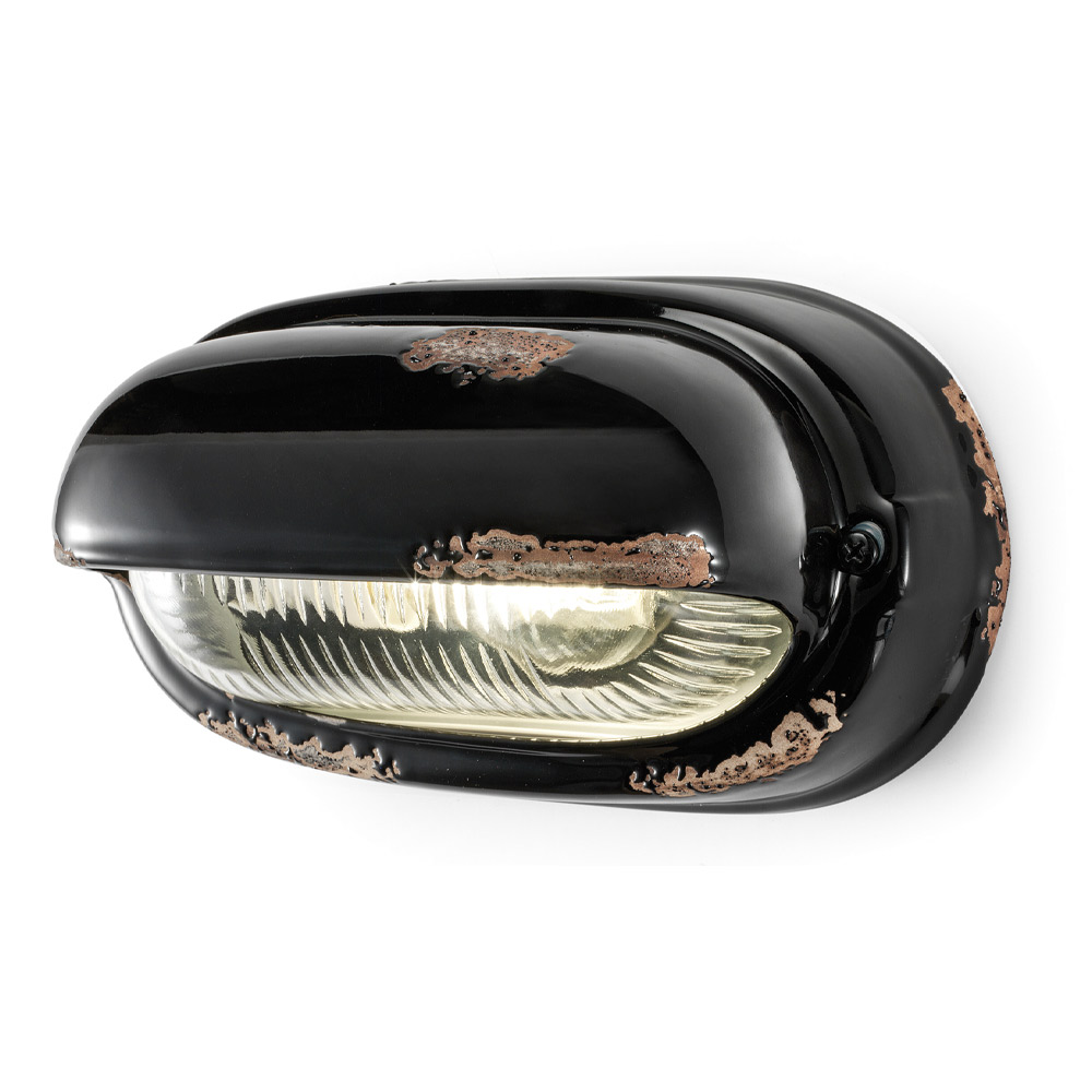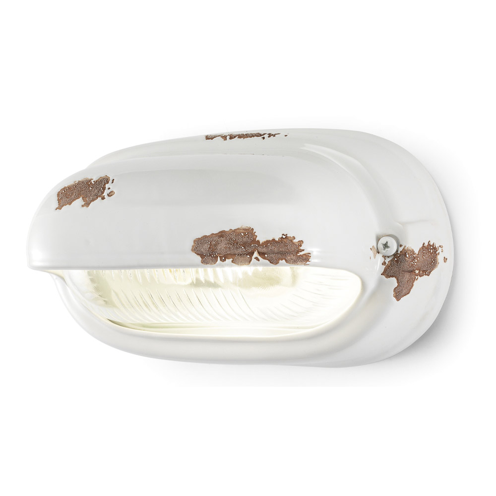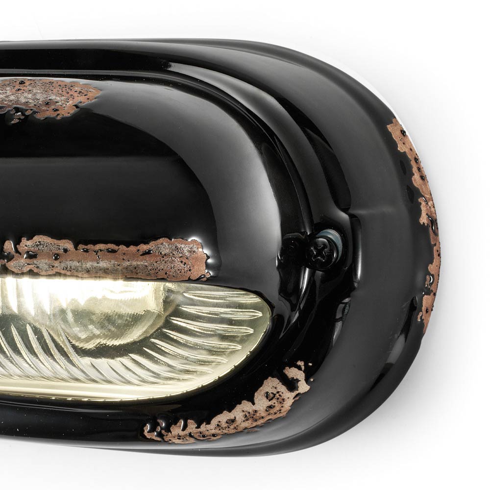 Ručně vyráběné horizontální nástěnné svítidlo v industriálním stylu z keramiky a kovu vyrobené v Itálii společností Ferroluce.