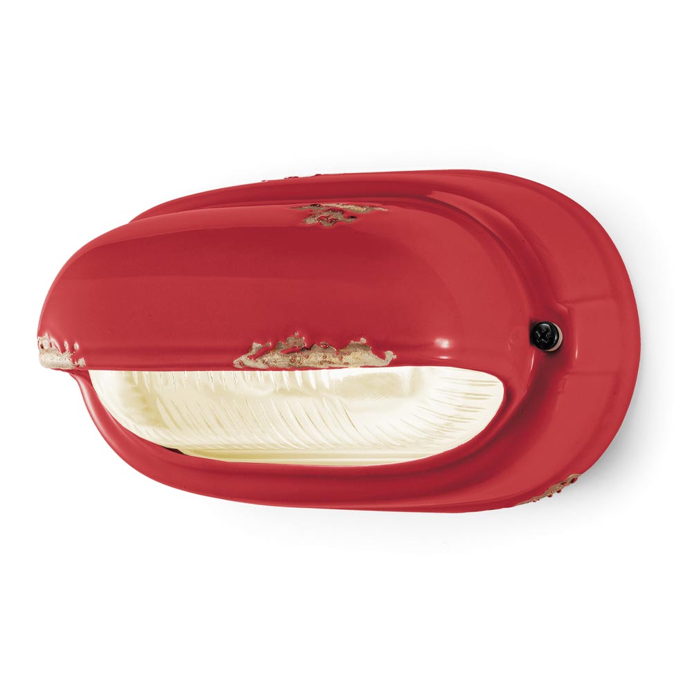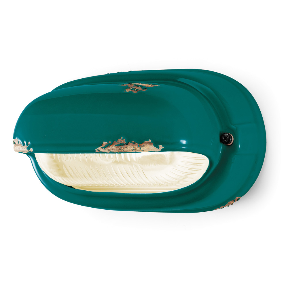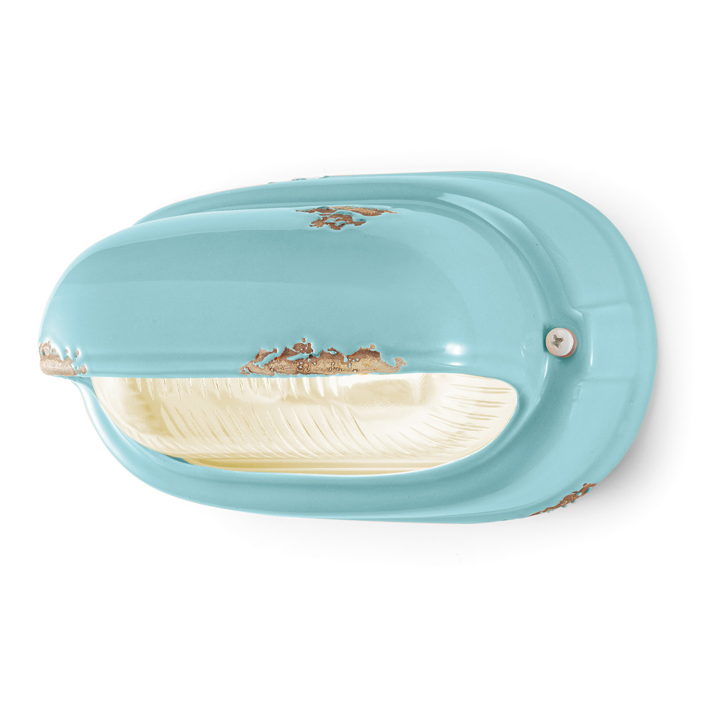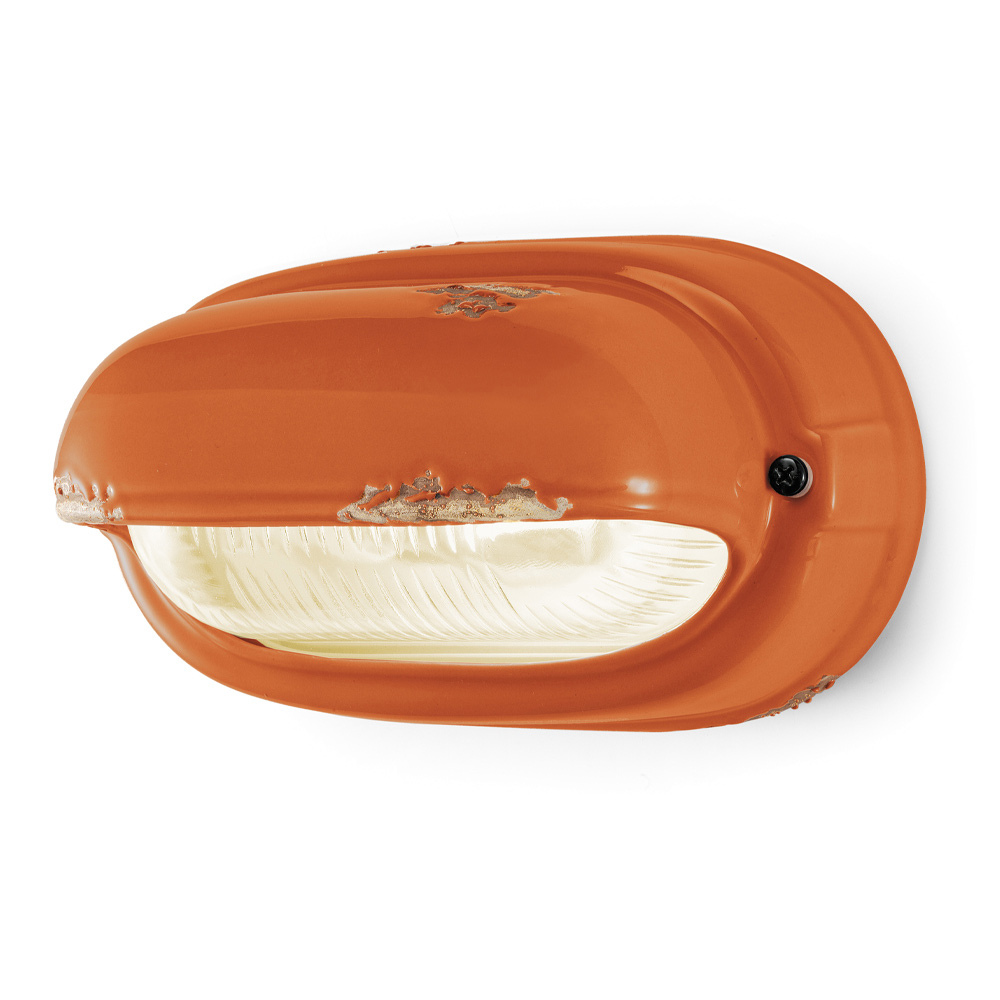 Ručně vyráběné horizontální nástěnné svítidlo v industriálním stylu z keramiky a kovu vyrobené v Itálii společností Ferroluce.