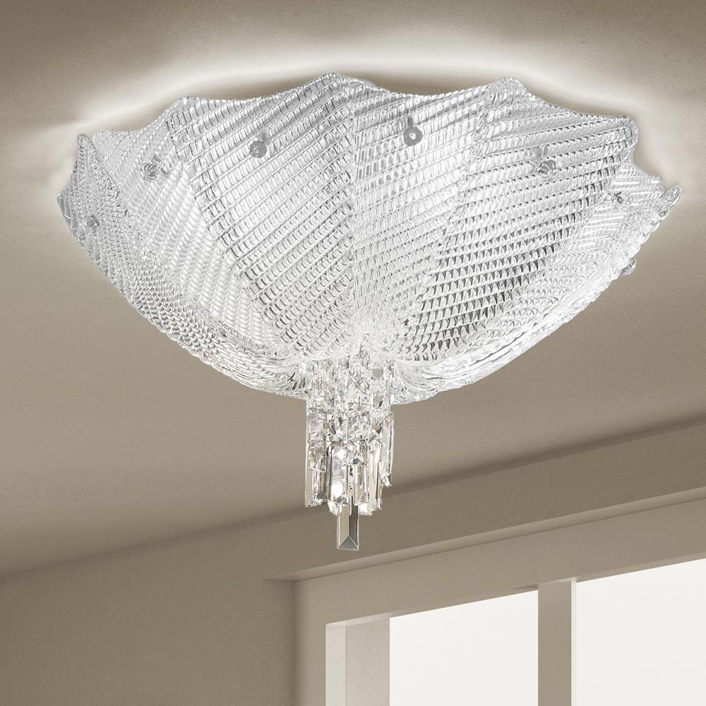 Ručně vyrobené stropní svítidlo z benátského skla a kovu Made in Italy.