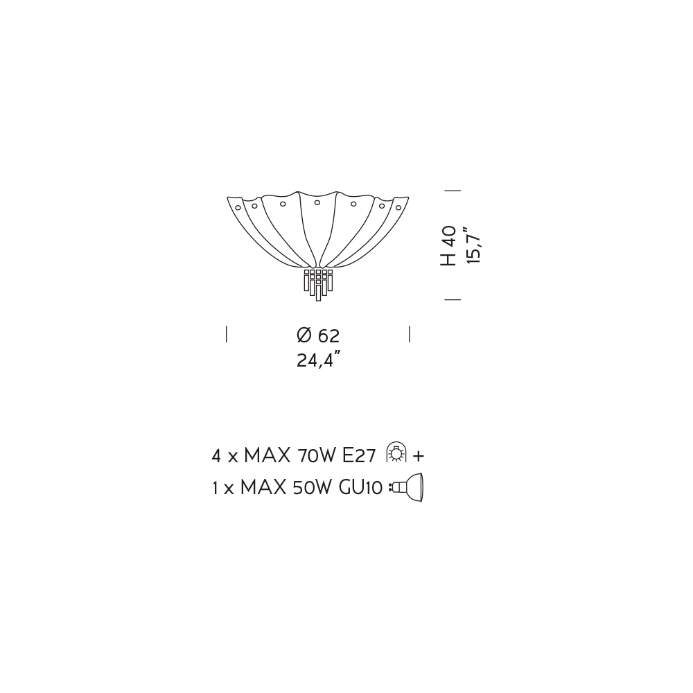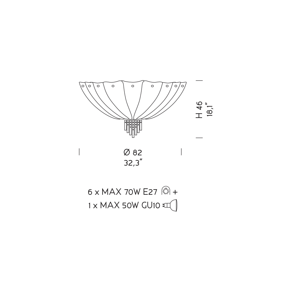 výrazovou silou , která charakterizuje její klenuté tvary získané speciálním zpracováním technikou talíře. Nádherné geometrické textury, která pokrývá celý povrch lampy, je místo toho dosaženo díky