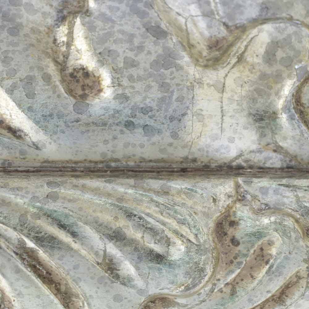 Toto elegantní zrcadlo je mistrovským designovým dílem, které kombinuje funkčnost a dekorativní styl . Rám je jemně zpracován s propletenými květinovými motivy a dokonale ladí s moderním květinovým pozadím, na kterém je umístěn, a vytváří vizuálně stimulující kontrast. Řemeslné zpracování je patrné v každém detailu , od jemné hry světla a stínu, kterou povrchová úprava nabízí, až po přesnost rytin, které zdobí okraje.