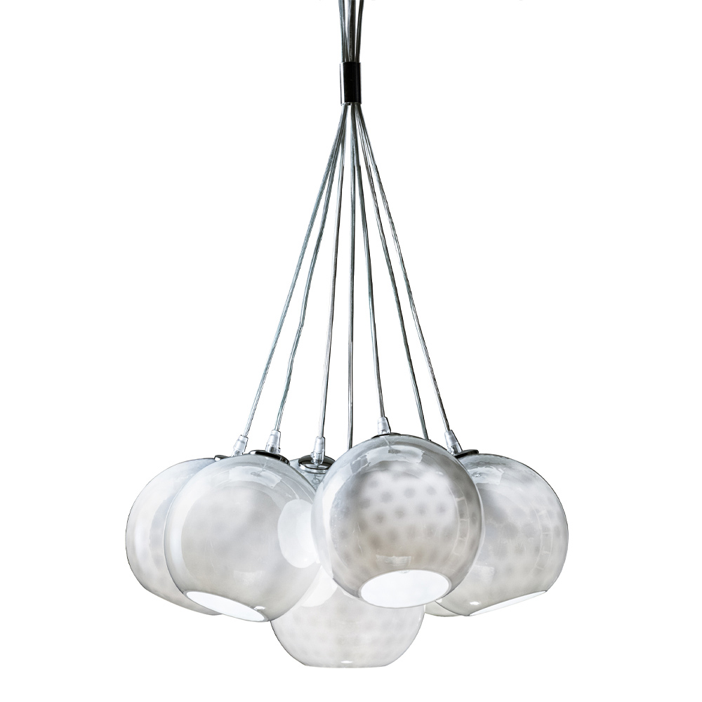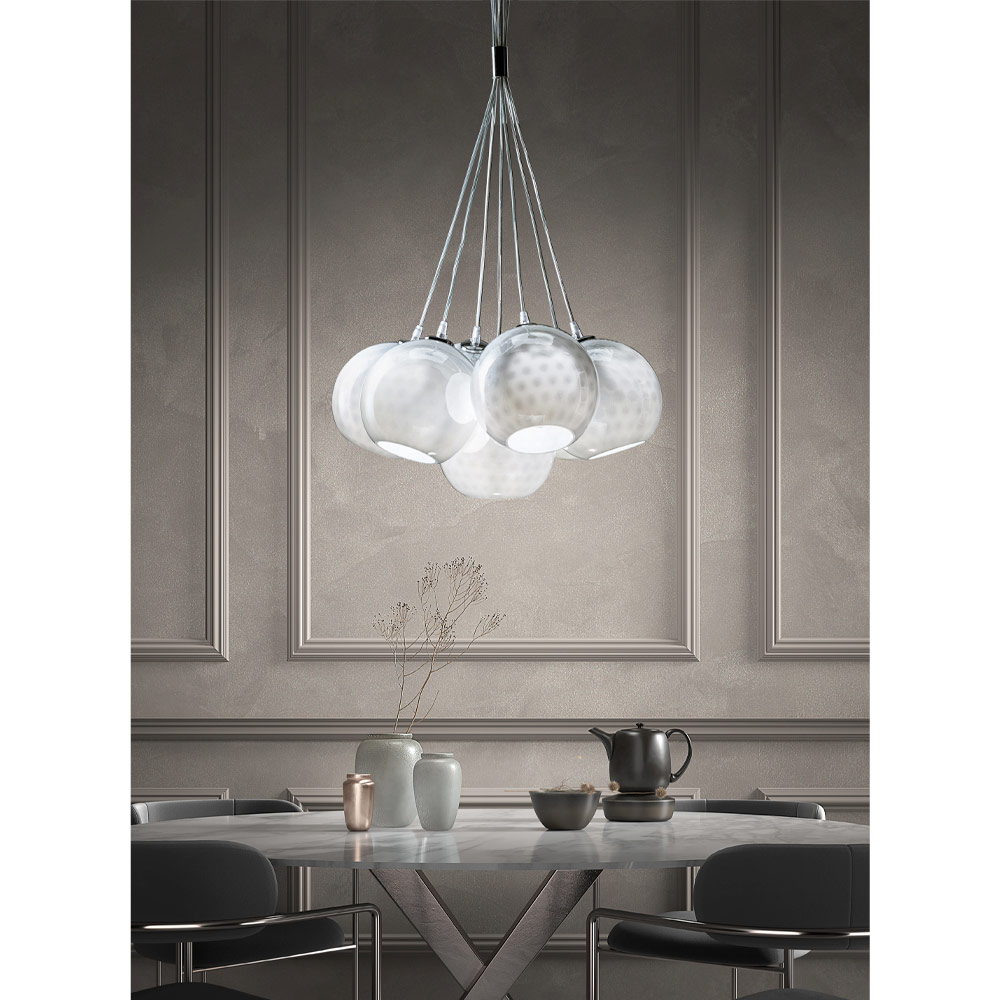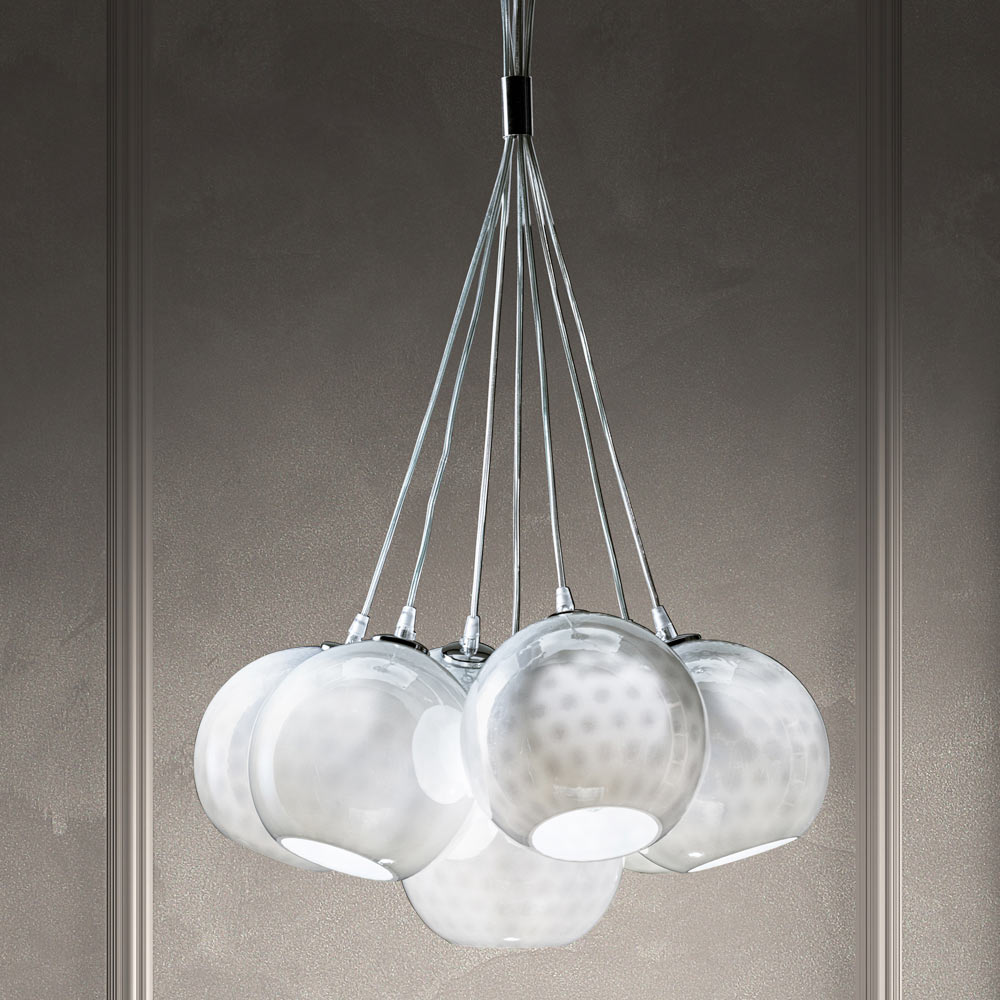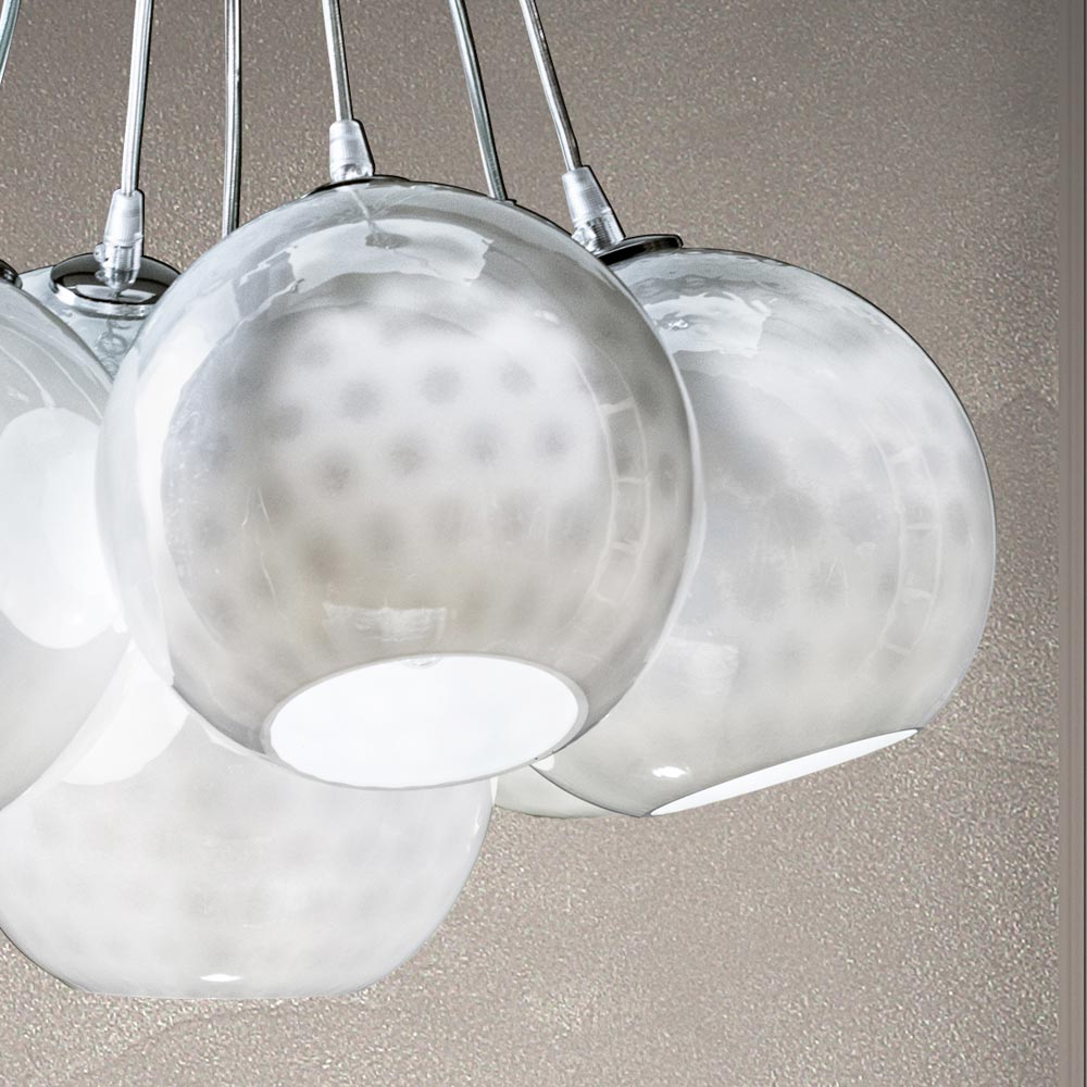 Lustr 7 světel z ručně foukaného skla v Benátkách technikou Balloton.