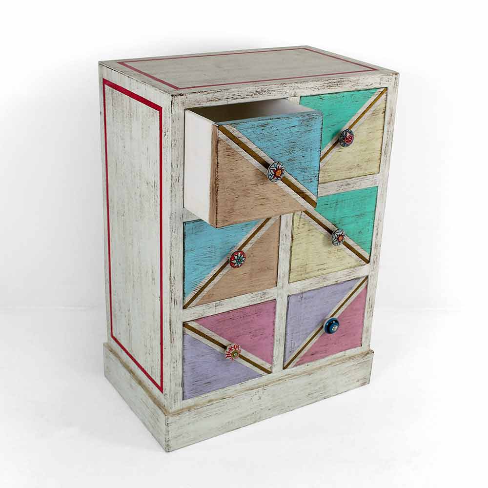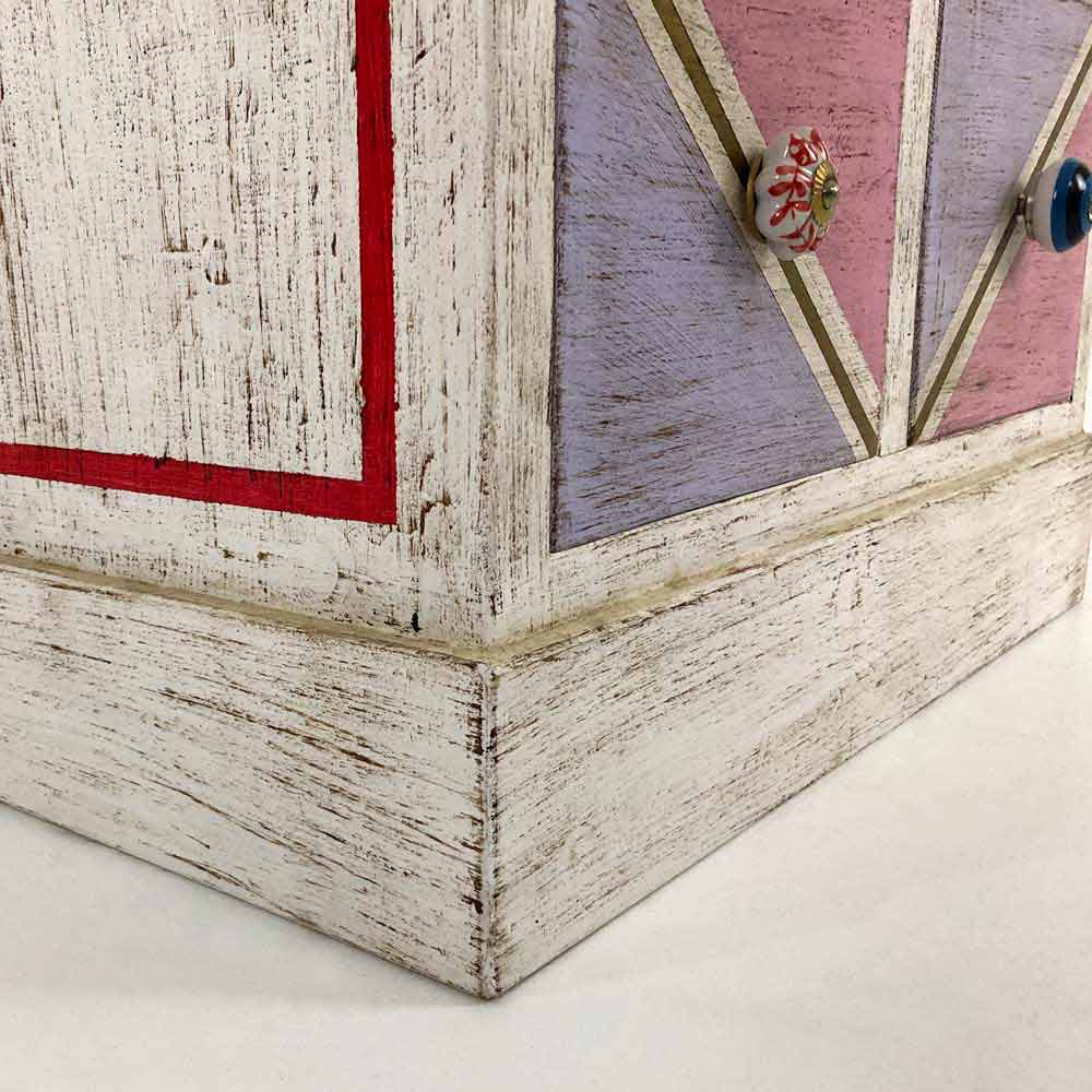 Ručně vyrobená dřevěná komoda se zásuvkami malovanými geometrickým vzorem, jemná položka Made in Italy.