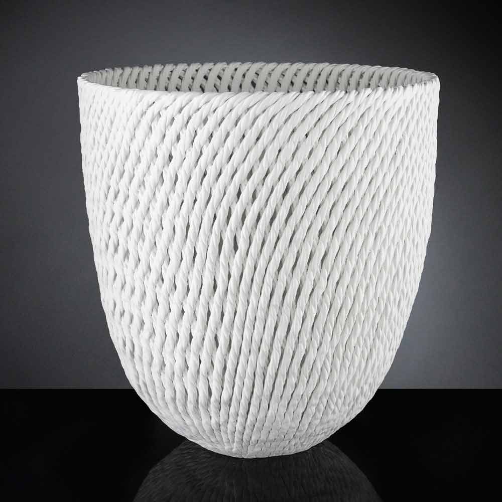Dekorativní váza pro interiéry z neprůhledné bílé keramické ručně vyráběné prostřednictvím 100% výroby v Itálii . Elegantní doplněk, který se vyznačuje zvláštní tkanou strukturou připomínající proutěný koš, čímž podtrhuje hodnotu řemeslného zpracování vyznačeného přesností, vášní a láskou k tradici. Výsledkem je myšlenka exkluzivního nábytku, který je ideální pro obohacení velkých jídelních stolů, vchodů, ložnic nebo jakéhokoli jiného prostoru, kde chcete dotáhnout estetiku s osobností a kultivovaností . Ideální styl pro nejrůznější prostředí, od bytového vybavení po hotely, restaurace, smluvní prostory, lázně, ale také jako prostředí pro akce a svatby.