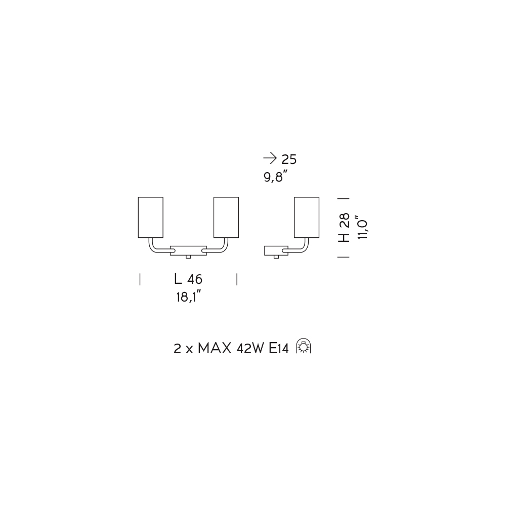 Žárovky (nejsou součástí balení) : 2 x MAX 42W E14