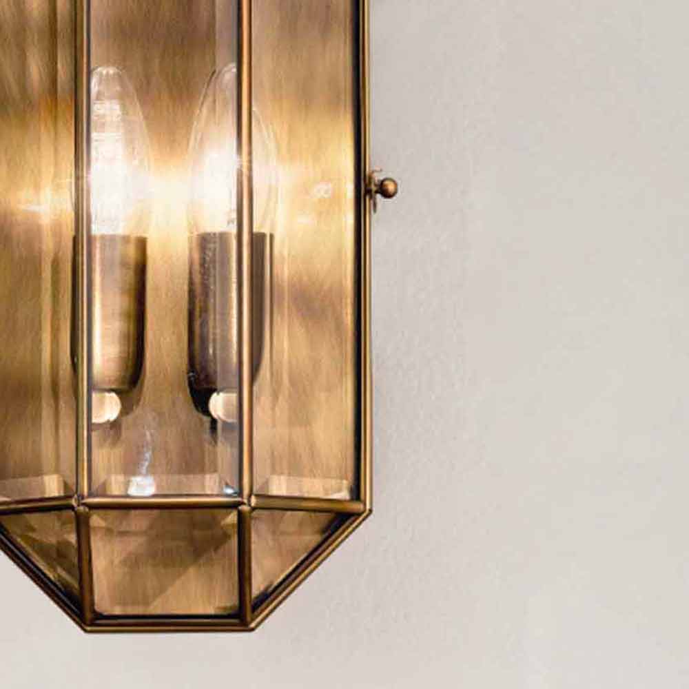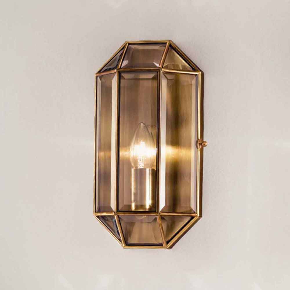 Nástěnná lampa ze skla a hnědé mosazi ve dvou velikostech, vyrobená v Itálii.