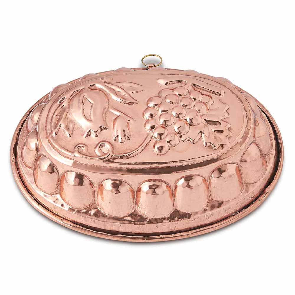 Oválný pekáč s hroznovým zdobením ručně vyrobený v Itálii pocínované mědi.