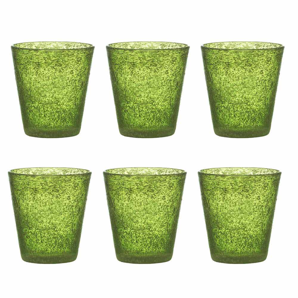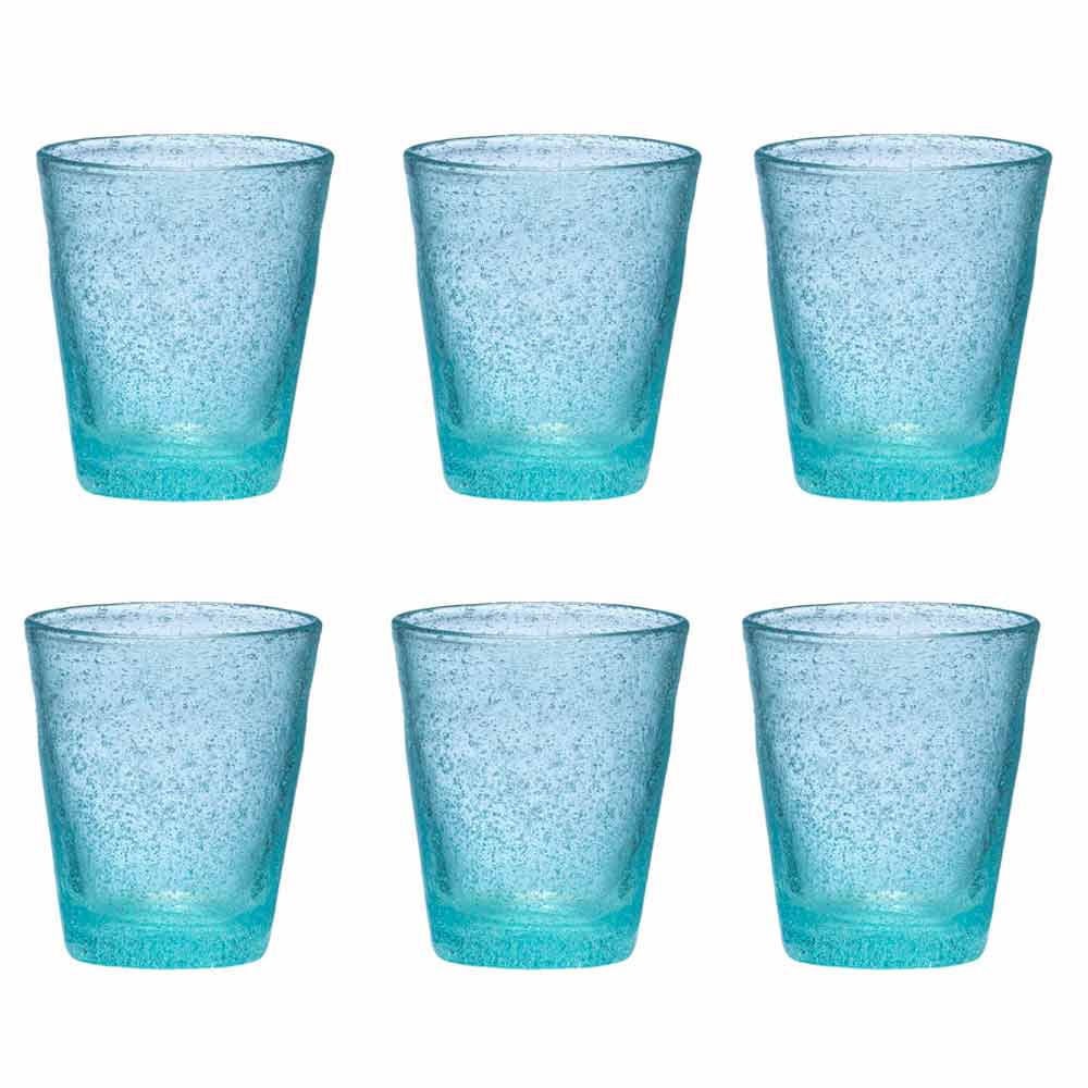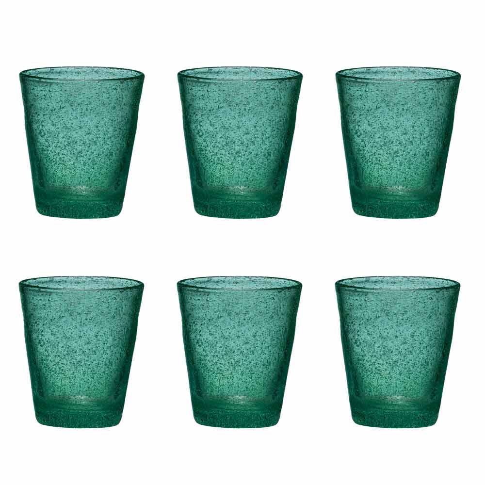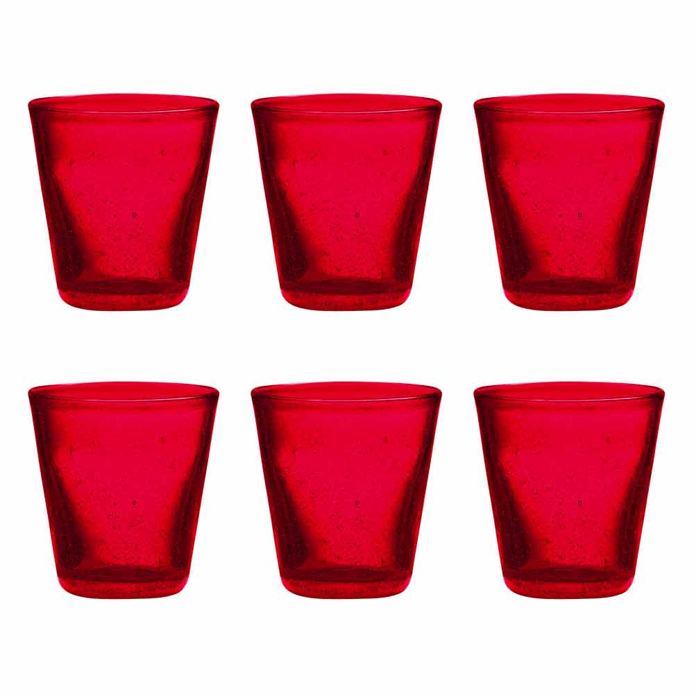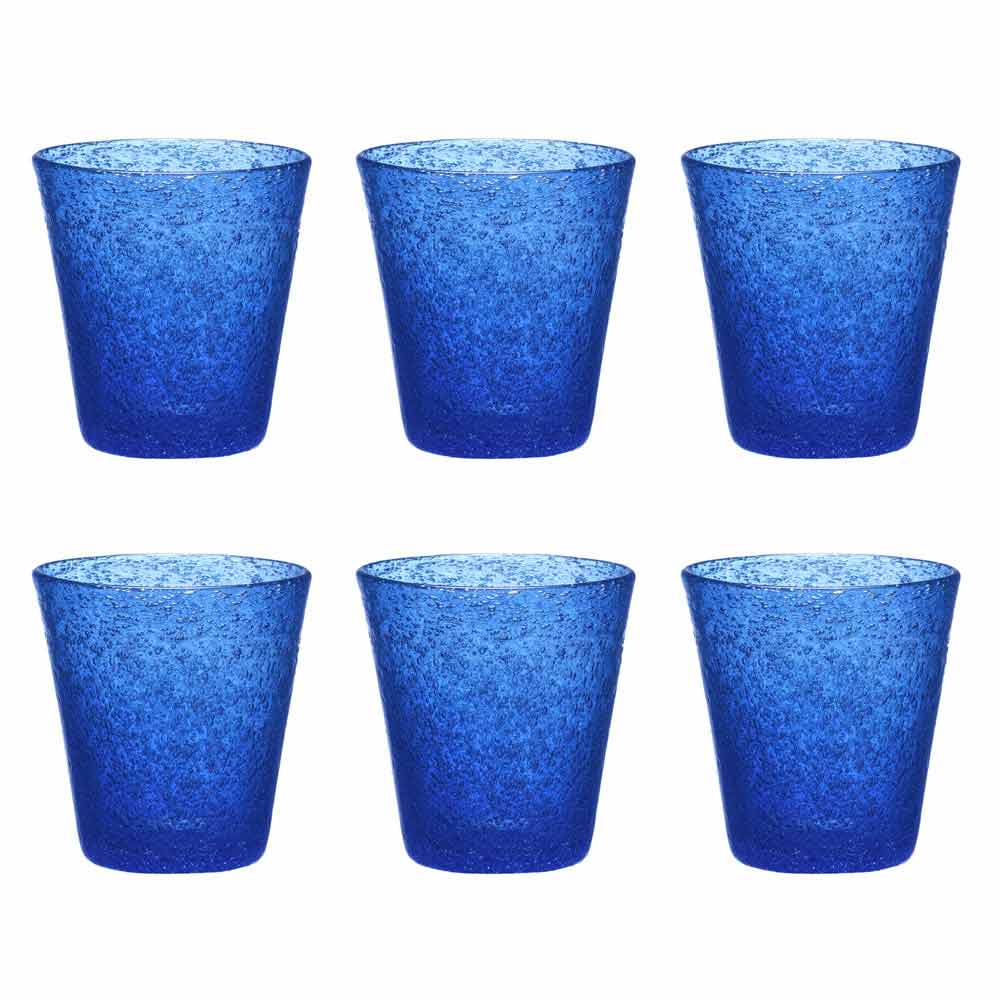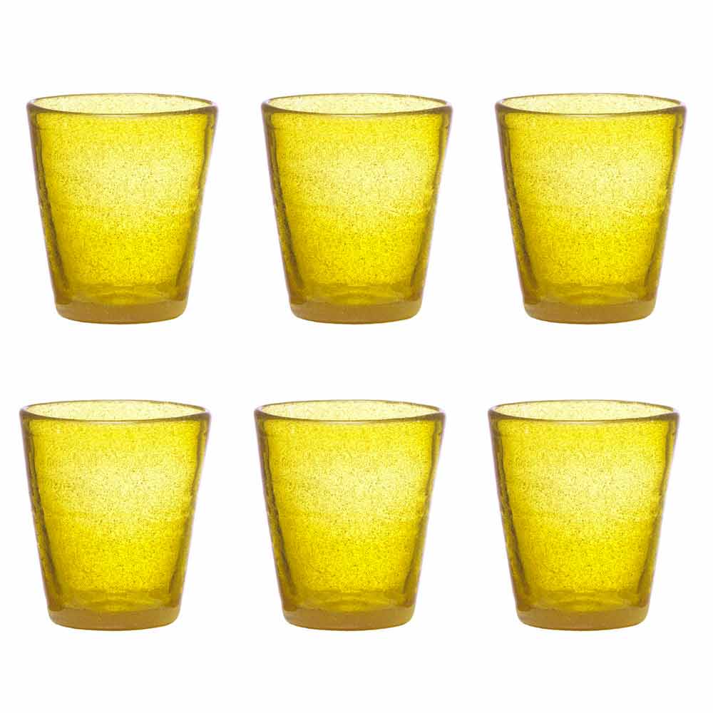 12 barevných sklenic na vodu nebo nápoje, vyrobených z foukaného skla as moderním designem.