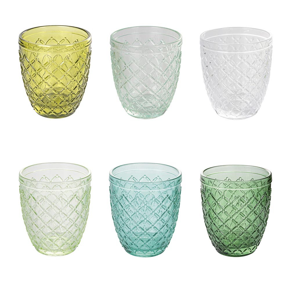 Prozkoumejte svět barev s touto sadou 12 sklenic , z nichž každá zachycuje podstatu atmosféry nebo denní doby. Sada obsahuje brýle v odstínech zlatého jantaru ranního slunce, intenzivní červené svátečního večera a svěží zelené , která připomíná bujné pastviny. Série pokračuje klidnou modří odpolední oblohy, sofistikovanou purpurovou hvězdnou nocí a krystalickou bílou měsíčního svitu. Každá sklenice je ozdobena vzorem vodních kapek nejen pro příjemný vizuální efekt, ale také pro jedinečný hmatový zážitek. Jsou perfektní pro každou příležitost, od snídaně přes brunch až po večerní aperitiv, dodávají každému stolu nádech stylu a vytříbenosti . Vyberte si tuto sadu a oživte každý okamžik nádechem elegance .