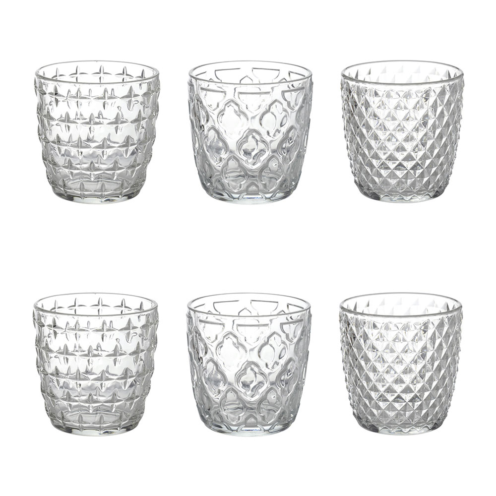 Tato sada 12 sklenic z čirého skla je mistrovským dílem rafinovanosti a lesku . Každý kus se může pochlubit jedinečným designem se složitými texturami od geometrických po organické vzory, které odrážejí světlo ve hrách jiskření a lomu . Sada je tvořena stylovými variacemi, které zahrnují klasický diamantový brus, elegantní vlny a rafinované květinové řezby, které nabízejí nejen sklenici pro každý nápoj, ale také pro každou osobnost. Tyto sklenice jsou ideální pro podávání aromatických vod nebo sofistikovaných koktejlů a dodávají každé příležitosti nádech půvabu . Jsou symbolem nadčasové elegance , vyrobené pro ty, kteří se rádi obklopují předměty, které vyprávějí příběhy tradičního řemesla a designu.