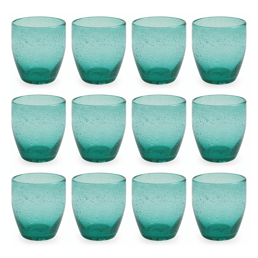 Sklenice na vodu z foukaného skla smaragdově zelené, sada 12 kusů.