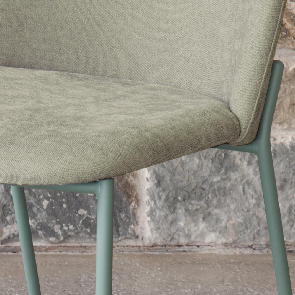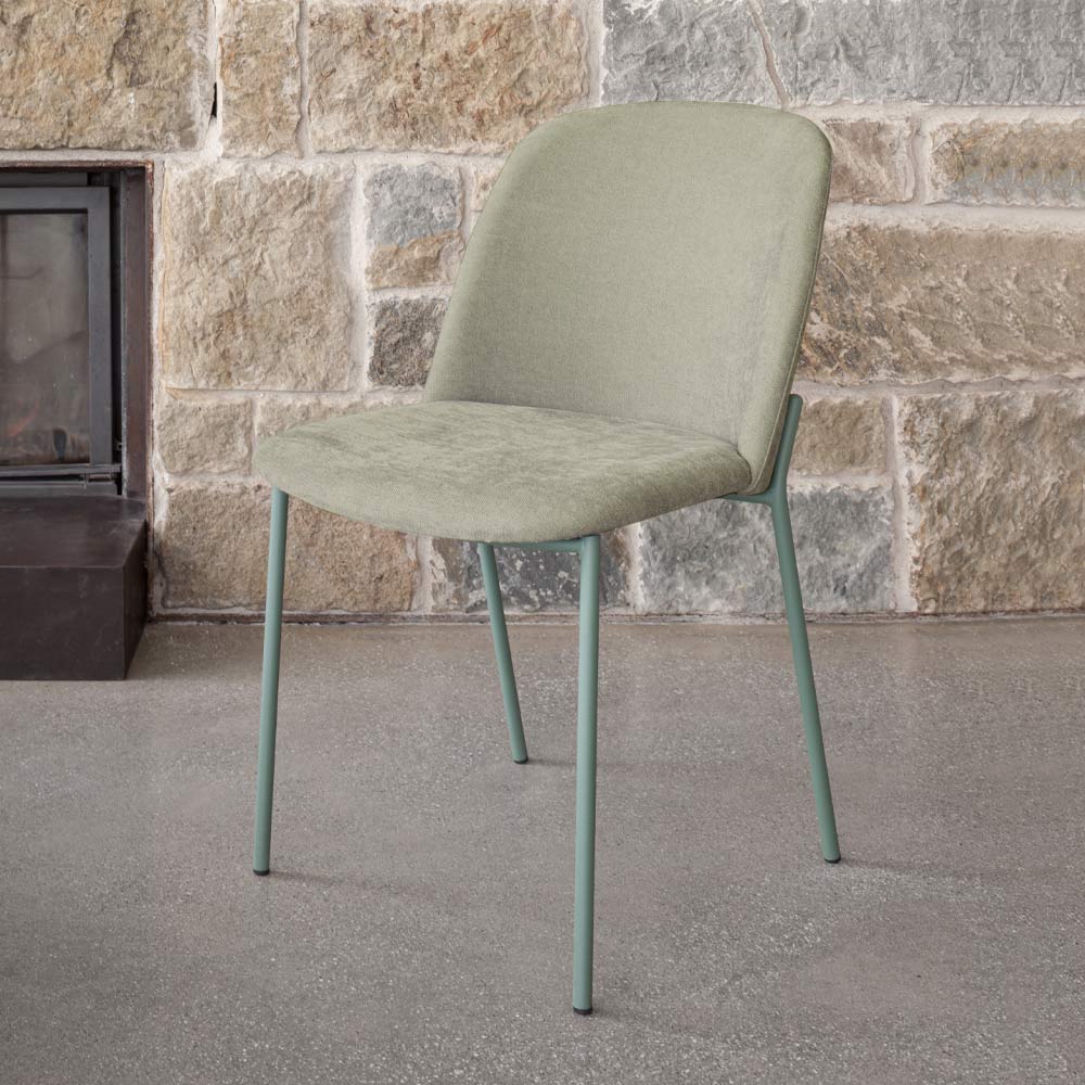Židle s moderním designem, definovaným měkkými liniemi, které zaručují pohodlí a všestrannost. Vyznačují se krytinou dostupnou v různých barvách a materiálech, které jim umožňují přizpůsobit se různým stylům vybavení. Kovové nohy s práškovým nástřikem podporují čalouněné tělo s odpovídajícím prošíváním, které přispívá k čistému a elegantnímu designu produktu. Tato kolekce je ideální pro ty, kteří hledají nábytkové prvky s moderním designem, které nesnižují pohodlí.