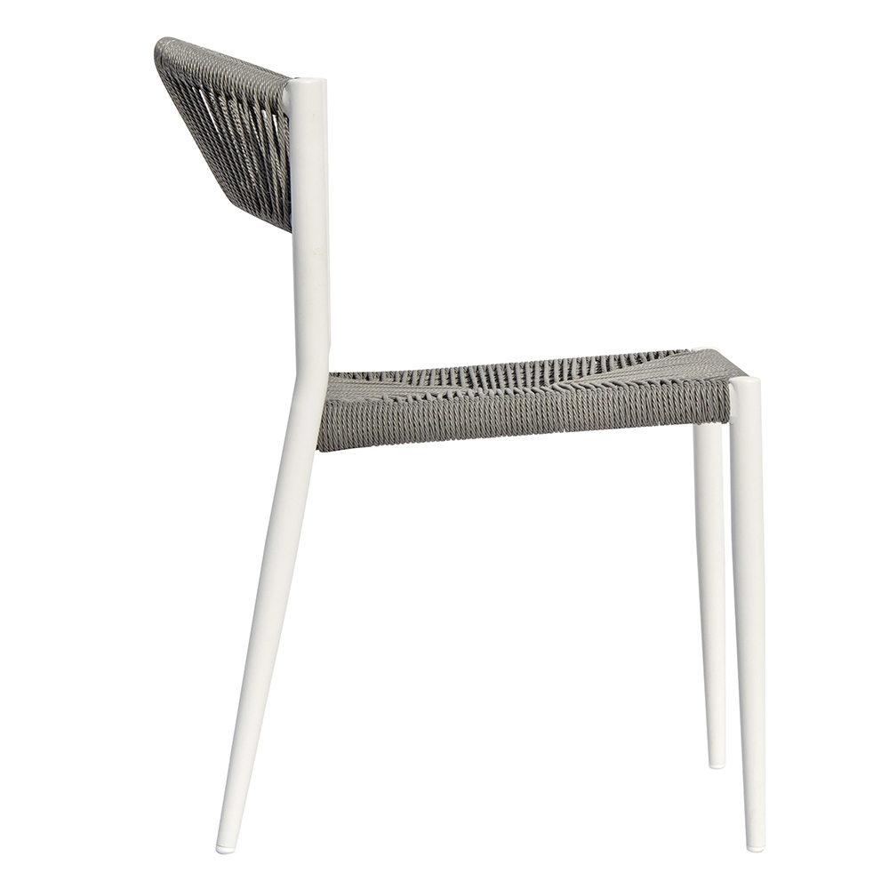 Tato zahradní židle kombinuje elegantní design, lehkost a odolnost a nabízí ideální řešení pro stylové vybavení moderních a příjemných venkovních prostor. Hliníkový rám z trubky o průměru Ø32 x 1,2 mm zajišťuje pevnost a odolnost, díky čemuž je židle lehká a snadno se s ní manipuluje.
