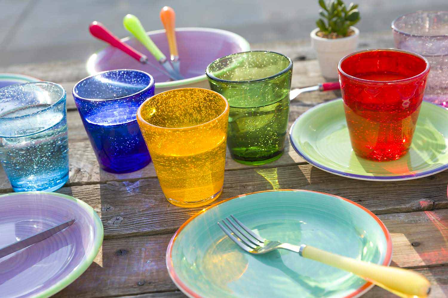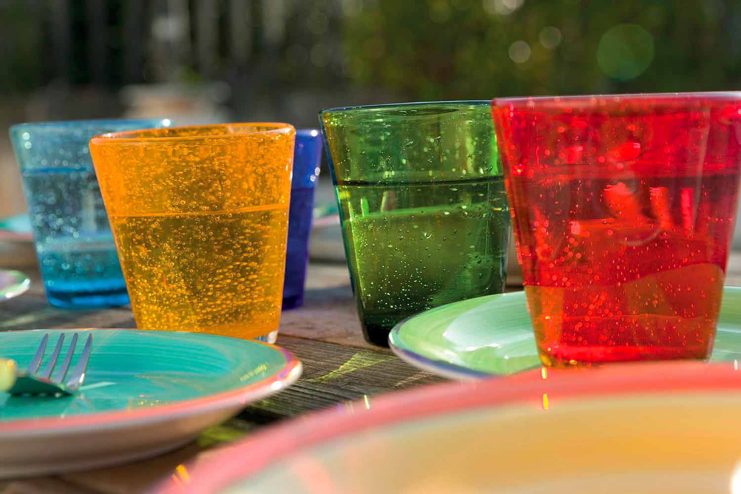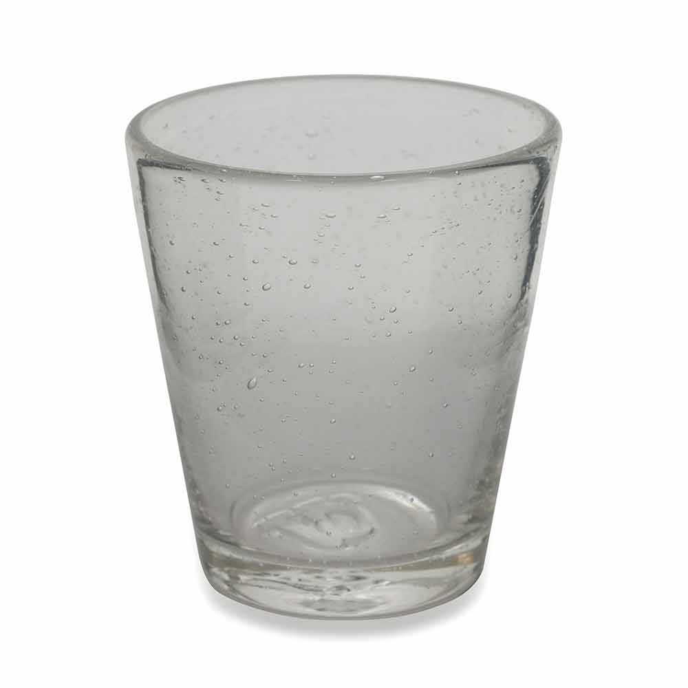 Prostorný tvar vítá nápoje, odhalené průhledností foukaného skla.