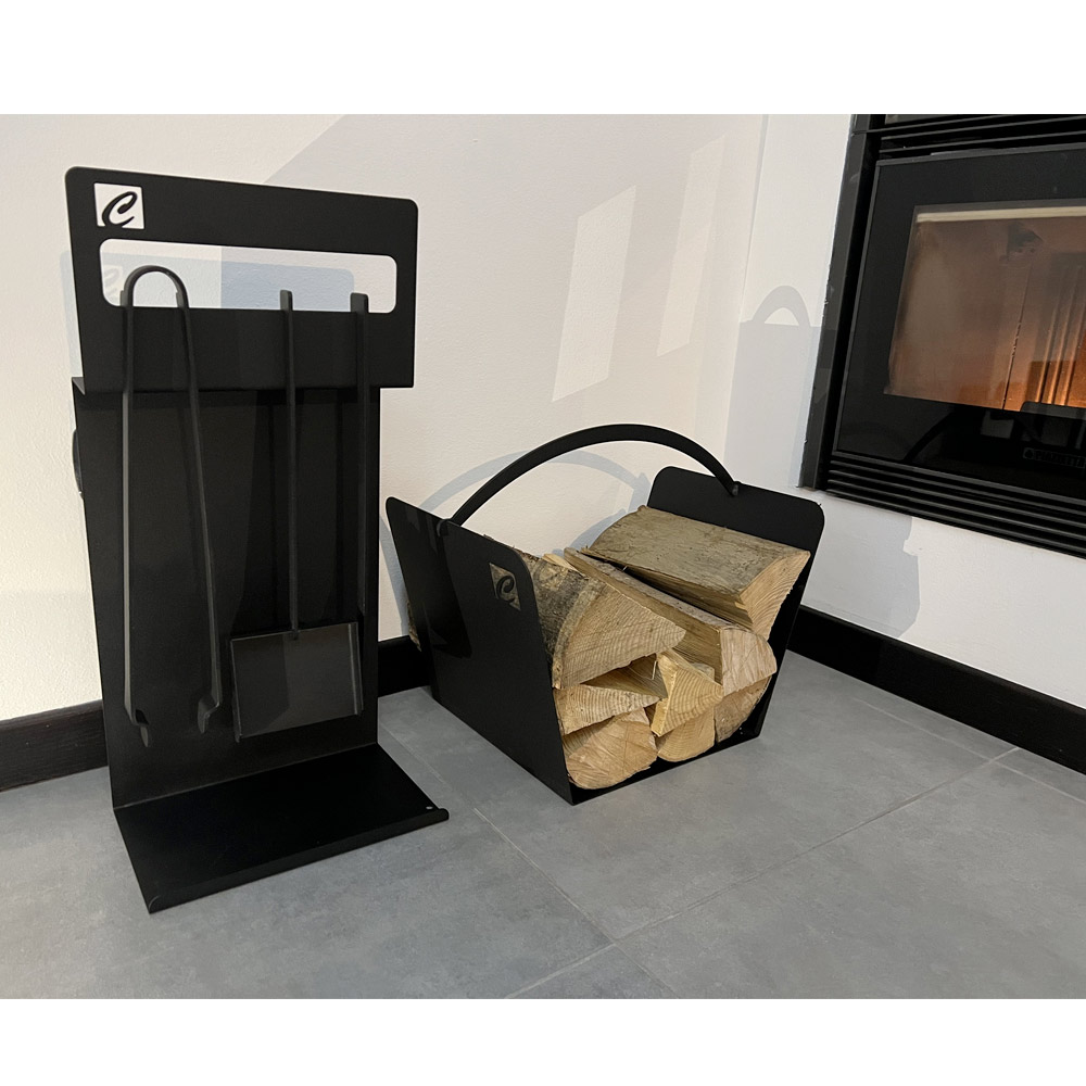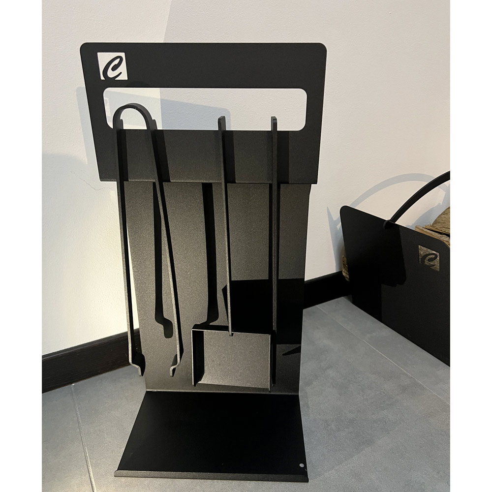 Sada designových krbových nástrojů z vysoce kvalitní netoxické oceli s práškovým nástřikem. Navrženo, navrženo a vyrobeno ručně v Itálii s cílem zdůraznit nejen užitečnost samotného objektu, ale také jeho estetickou hodnotu.